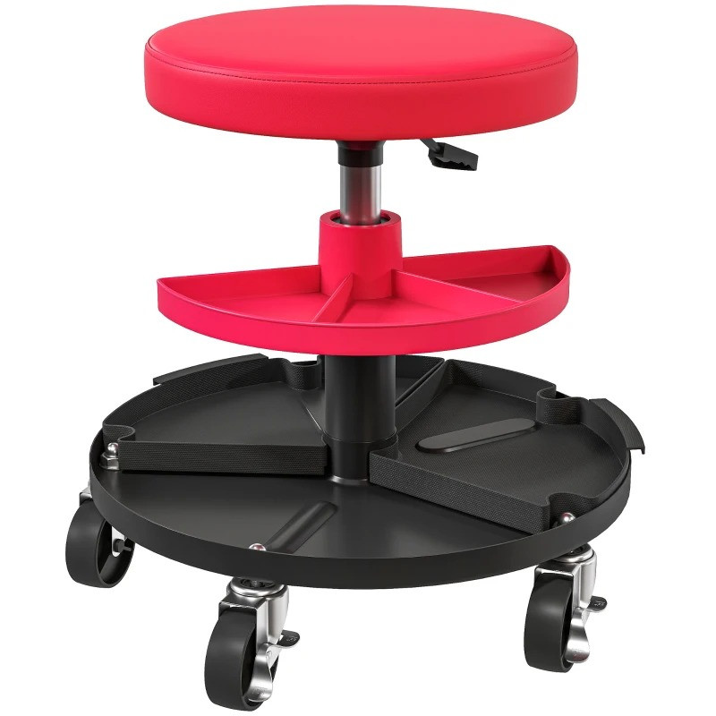 Optimalizujte své pracoviště v garáži pomocí montážní stoličky. Tato dílenská stolička je vyrobena z robustní oceli, unese až 135 kg a nabízí pneumatické nastavení výšky pro optimální pohodlí. Montážní stolička je vybavena kůží odolnou proti poškrábání a měkkým polštářem, který snižuje únavu, zatímco hladce se pohybující 360° kolečka umožňují bezproblémový pohyb.