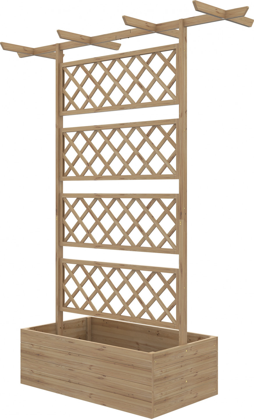 Tento stylový vyvýšený balkonový záhon je vybaven zadní mříží a stříškou pro zavěšené rostliny. Konstrukce květinového truhlíku je vyrobena z robustního jedlového dřeva a je ideální pro venkovní použití. Oživte svůj domov vyvýšeným záhonem s mříží a předveďte své rostliny v atraktivním stylu.