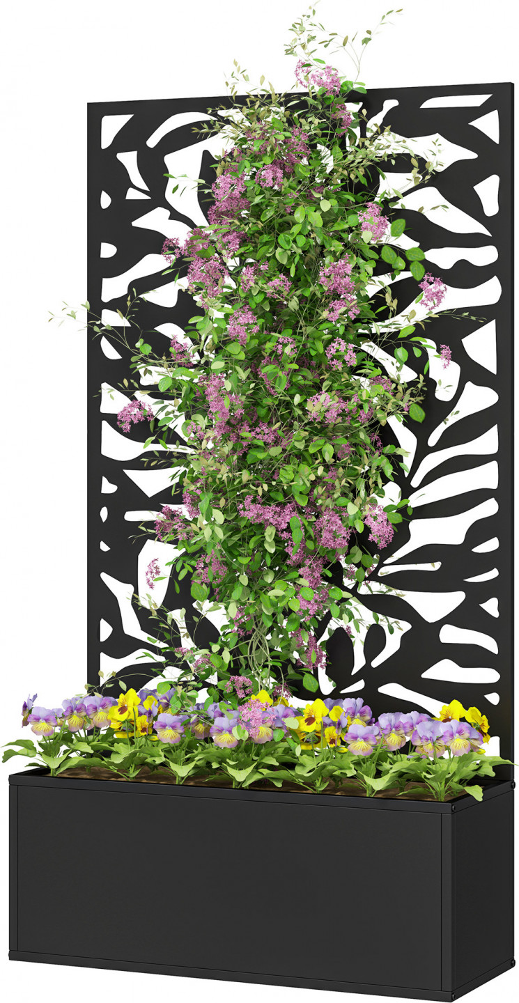 Venkovní kovový záhon s mříží pro popínavé rostliny 61 x 23 x 113 cm | černý