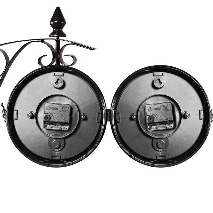 Tyto krásné oboustranné hodiny s sebou do vašeho bydlení přinesou retro styl a vysoce kvalitní zpracování. Hodiny mají ciferníky na obou stranách se dvěma hodinovými strojky, takže si můžete nastavit dva různé časy. Stylové nástěnné hodiny se stanou nepřehlédnutelným prvkem Vašeho bytu.