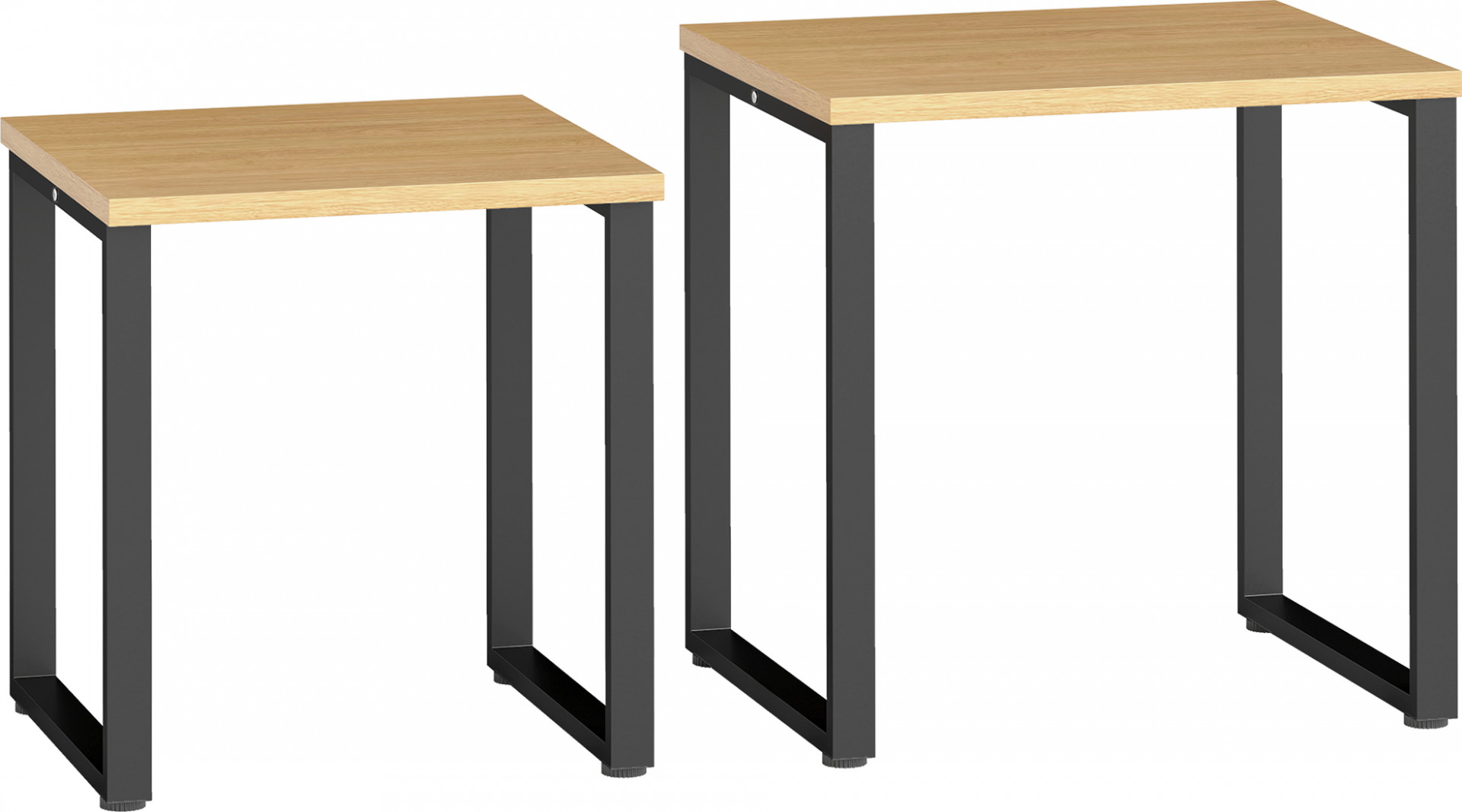 Poznejte kouzlo soupravy odkládacích stolků - prostorově úsporné dvoudílné provedení, které flexibilně vyhoví vašim potřebám. Používejte je společně nebo samostatně jako stylové konferenční stolky. Díky povrchu připomínajícímu dřevo a elegantním černým kovovým nohám v sobě spojují funkčnost a eleganci - jsou ideální pro vystavení dekorací nebo pro uložení důležitých věcí na dosah ruky.