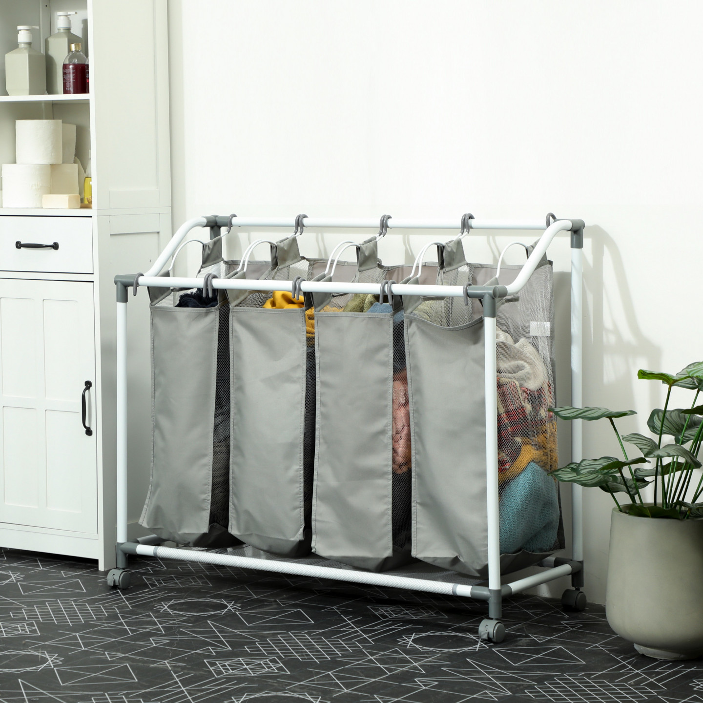 Optimalizujte svou prací rutinu s prostorným a stylovým košem na prádlo. Je ideálně navržen pro efektivní třídění a organizaci. Čtyři vyjímatelné látkové vaky koše o objemu 40 l usnadňují rozdělení oblečení podle barev nebo typu. Vaky jsou vyrobeny z lehké, ale odolné tkaniny Oxford a nabízejí každodenní odolnost. Díky čtyřem hladce posuvným kolečkům lze koš na prádlo snadno přemisťovat mezi místnostmi.