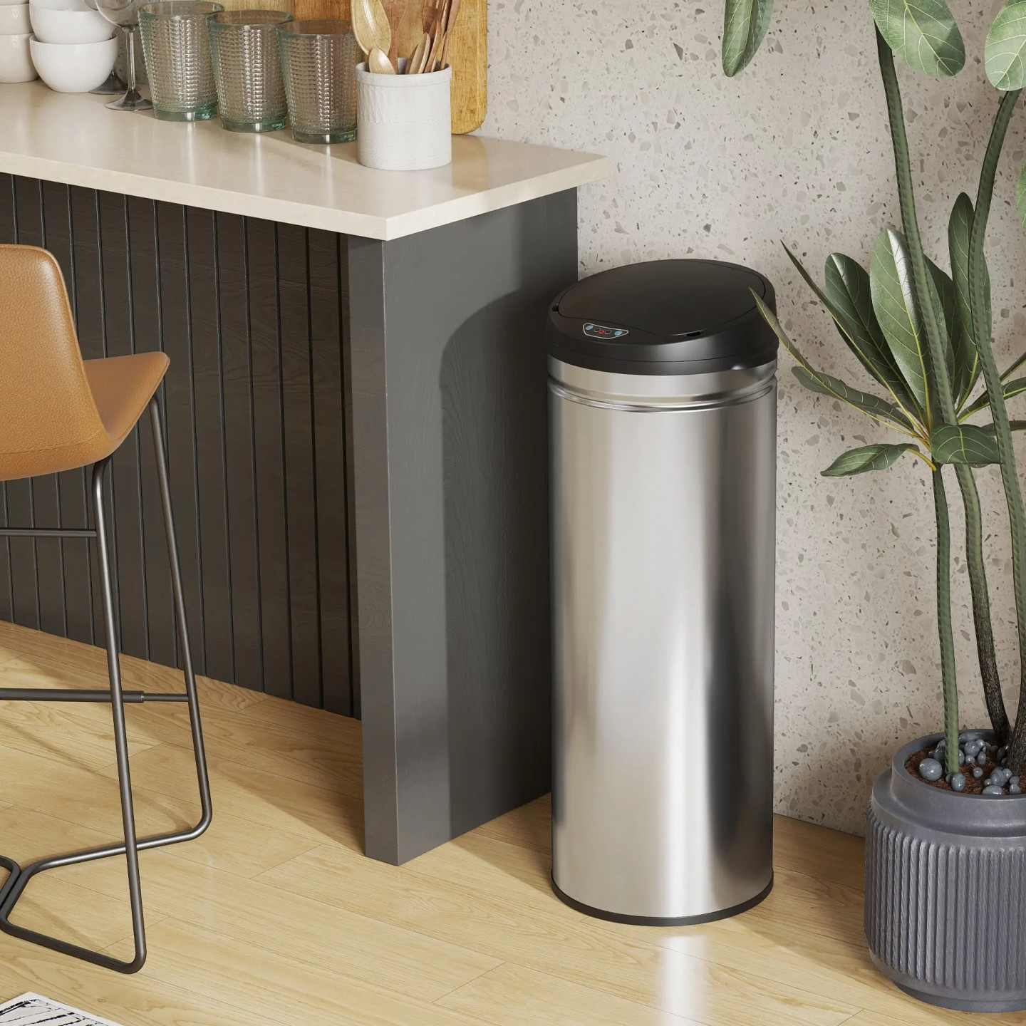 Vyvážení kuchyňského odpadu plnýma rukama často vede k únavnému boji s víkem koše. Senzorový koš tento problém elegantně řeší: automaticky se otevře za pouhých 0,5 sekundy a díky velkému objemu 50 litrů a robustnímu kroužku na sáčky nabízí účinnou podporu pro hektický každodenní život. Zažijte čistší a pohodlnější kuchyni s tímto moderním odpadkovým košem, který vám usnadní každodenní život.