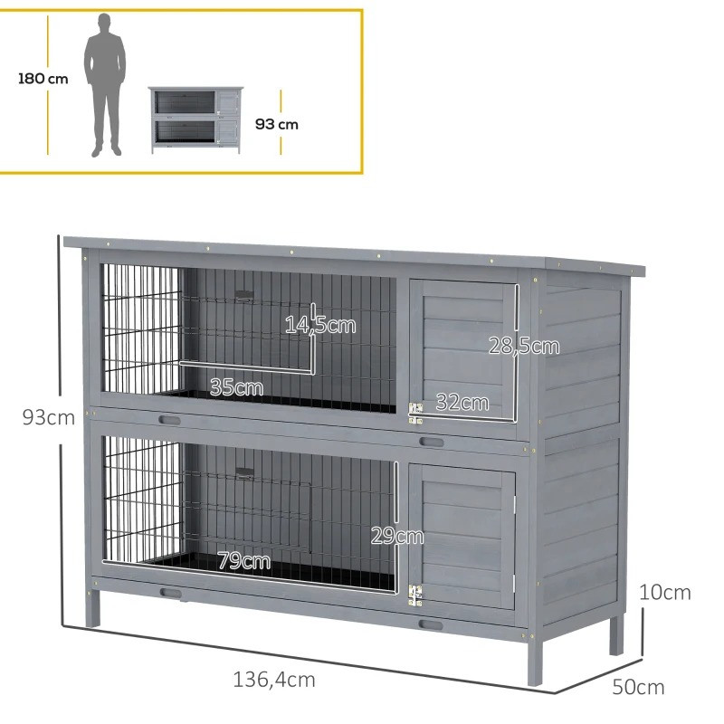 2patrová králíkárna z masivního dřeva 136,4 x 50 x 93 cm | šedá