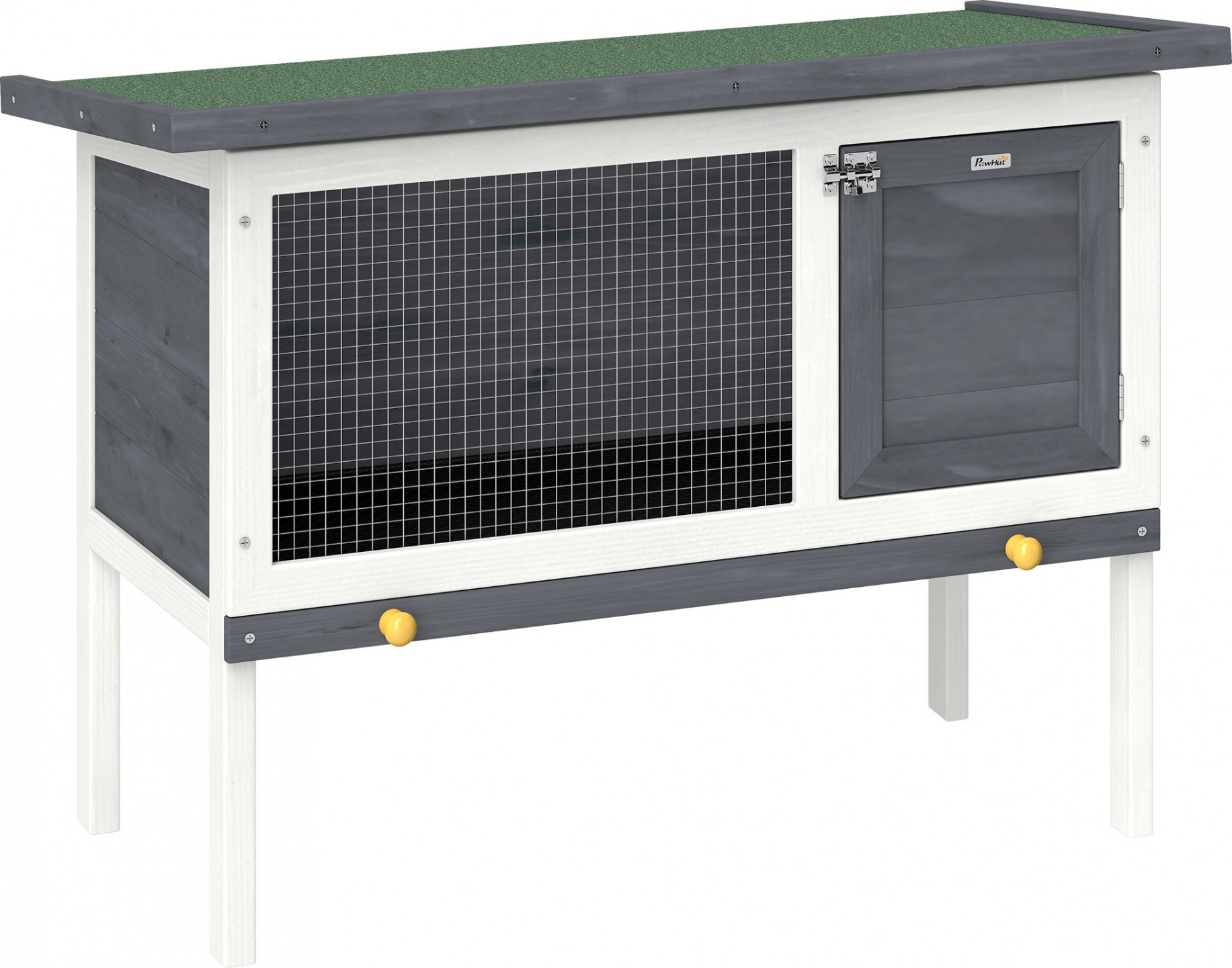 Domov pro vašeho domácího mazlíčka - tato prostorná králíkárna nabízí prostor na hraní i spaní. Díky vodoodpudivé barvě a asfaltové střeše je vhodná i pro venkovní použití a je chráněna před deštěm. Pozorujte svého mazlíčka přes pozinkované drátěné pletivo, jak se zabydluje v novém prostředí. Vaničku lze pro čištění vyjmout a střechu lze otevřít, takže nový domov zůstane vždy čistý a hygienický.