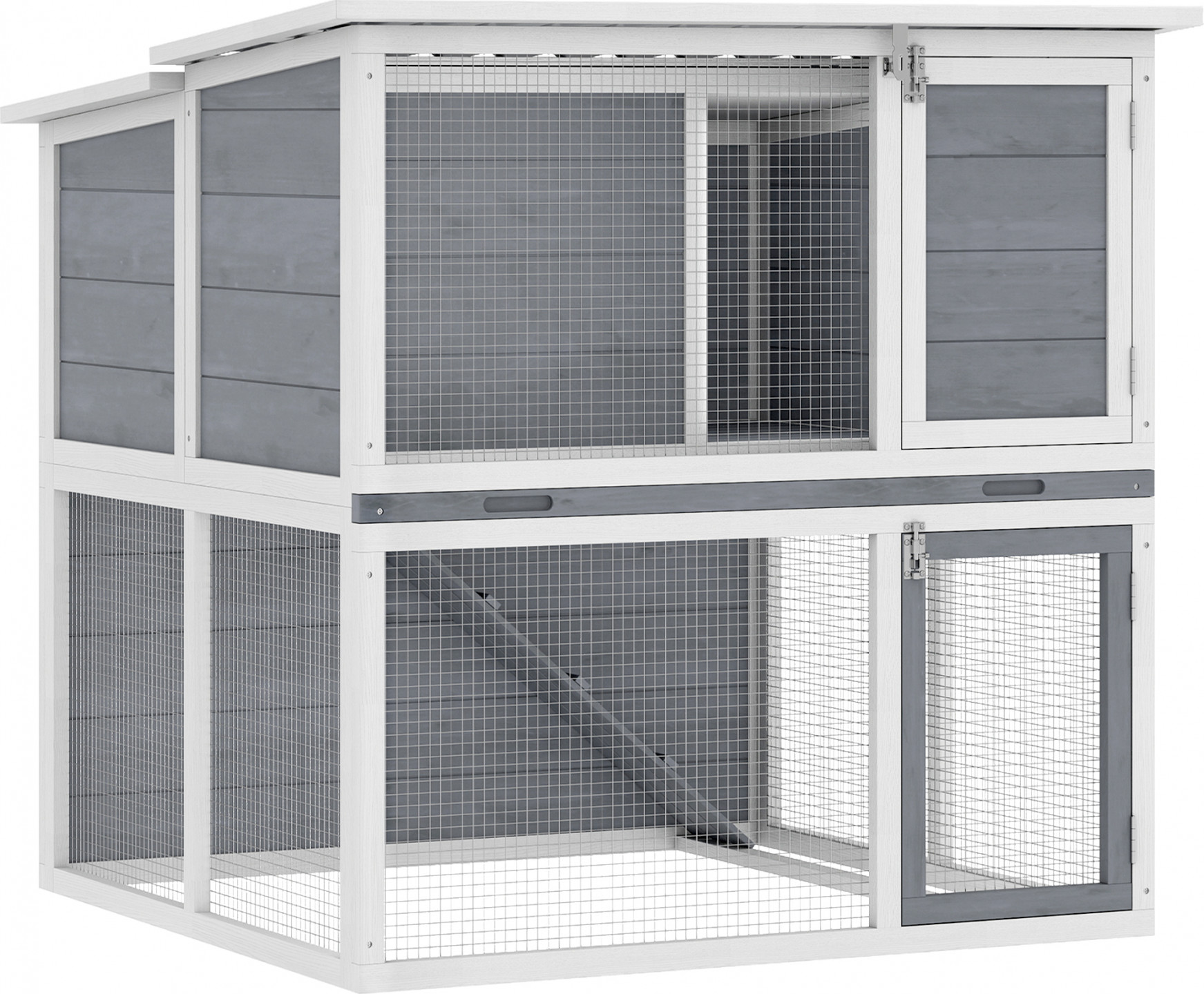 Máte už dost viklajících se klecí a zdlouhavého čištění? Neustálé obavy o bezpečnost vašich domácích mazlíčků v nepředvídatelném počasí a starost o úklid jejich domova mohou být vyčerpávající. Tato venkovní králíkárna vám nabízí klid. Její prostorná dvoupatrová konstrukce nabízí dostatek prostoru k prozkoumávání, zatímco střecha odolná proti povětrnostním vlivům je udrží v suchu. Výsuvná zásuvka usnadňuje čištění a vytváří spokojený a zdravý domov.