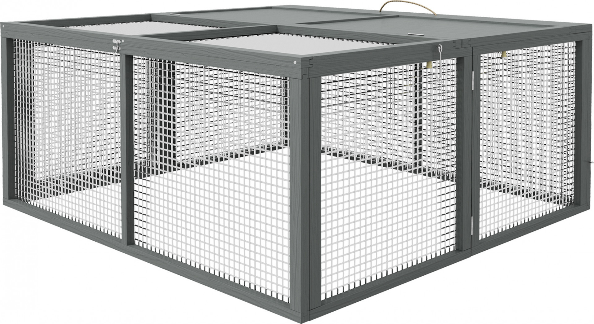 Objevte kouzlo výběhu pro malá zvířata, dokonalého, skládacího a přenosného místa pro vaše chlupaté přátele. Díky sklopné střeše a několika dvířkům je přístup k vašim mazlíčkům hračkou. Tento prostorný výběh, určený pro 2-3 zvířata, kombinuje robustní dřevěnou konstrukci s barvou bezpečnou pro zvířata a zaručuje tak bezpečný a prostorný domov. Nádherný výběh pro zakrslé králíky pro malá zvířata na vaší zahradě.