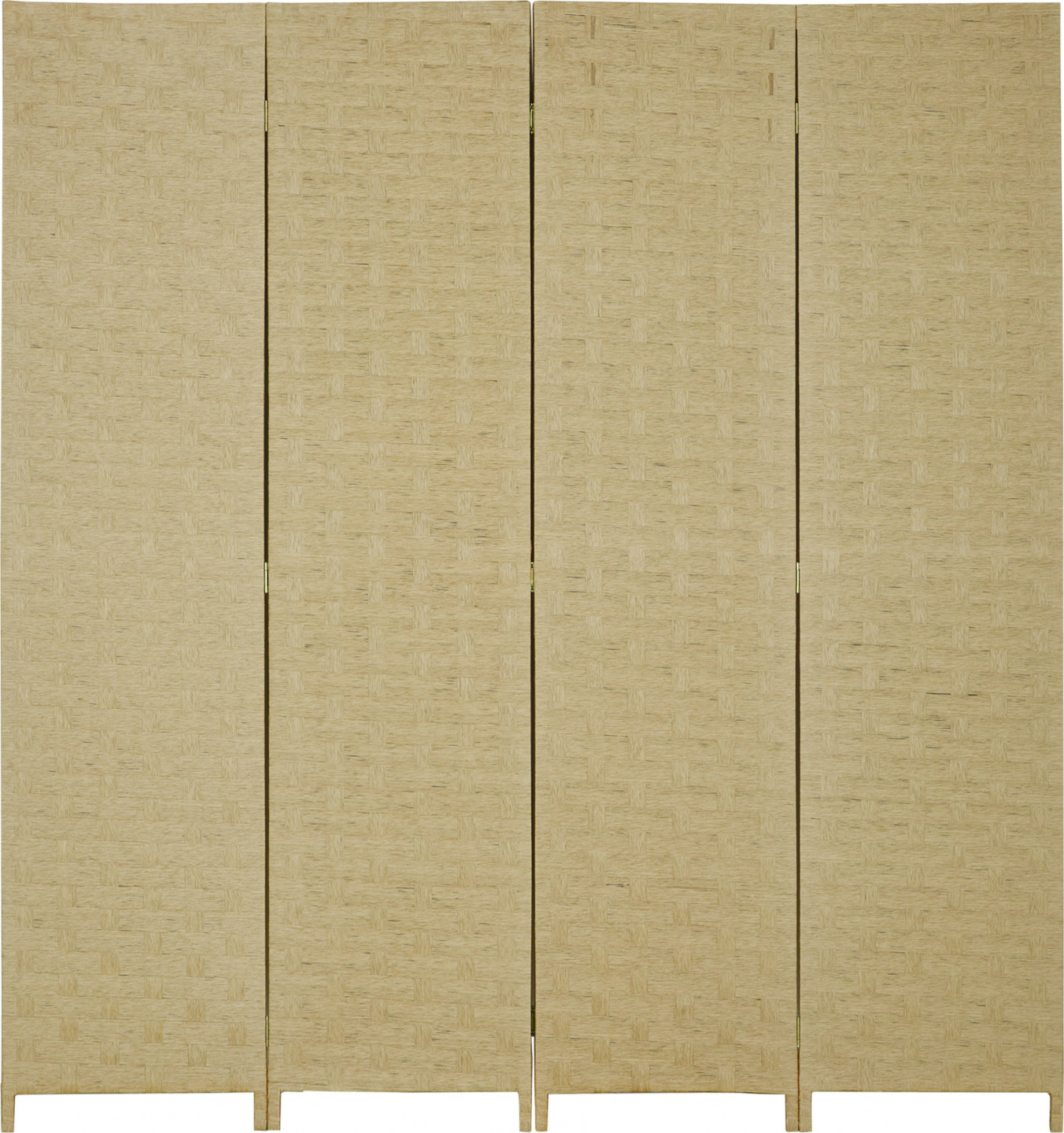 - 4dílná interiérová příčka v přírodním stylu s tkanými panely z přírodního dřeva.