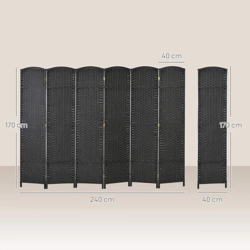 Přestavte si místnosti pomocí rozdělovače místností. Polypropylenový materiál zajišťuje větší soukromí a odolnost než běžná papírová vlákna. Mobilní příčka kombinuje styl a funkčnost díky elegantní šestidílné skládací konstrukci a 15 kovovým pantům. Zakřivený rám z borovicového dřeva a polypropylenová tkanina dodávají této skládací zástěně elegantní nádech.
