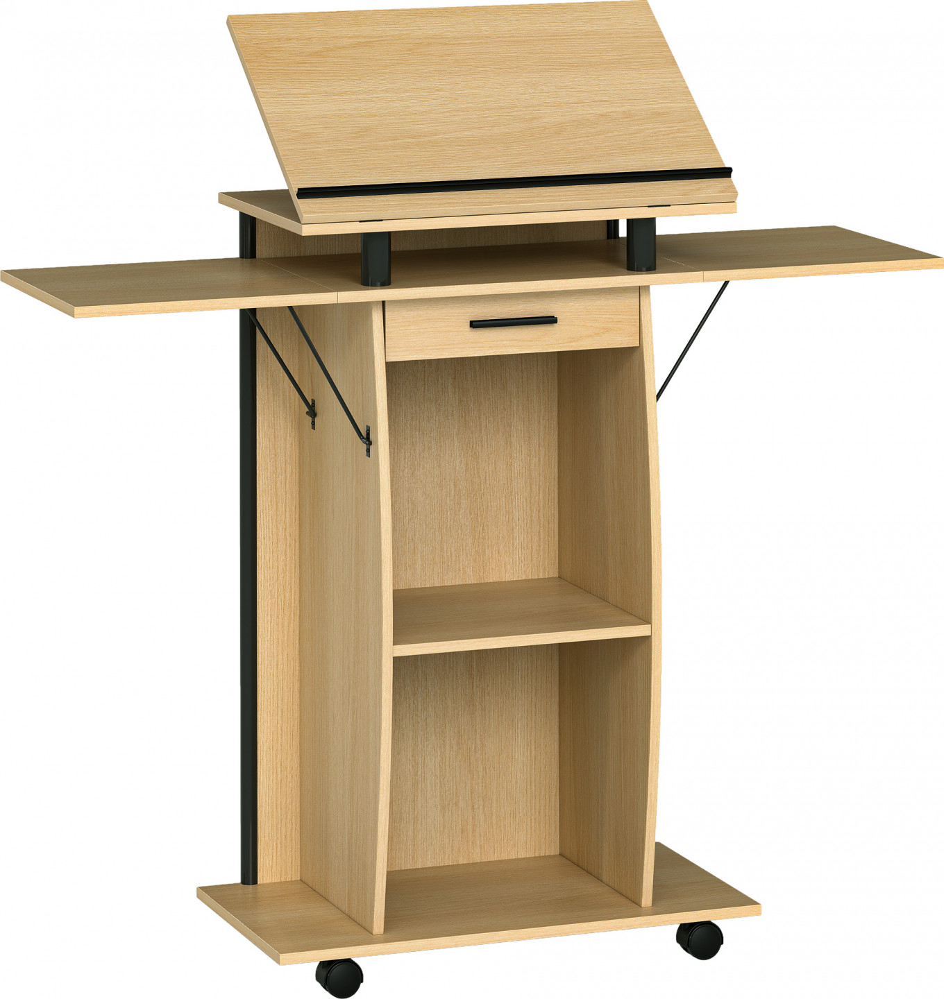 - Spolehlivý dřevotřískový a kovový rám řečnického pultu, určený pro každodenní použití.