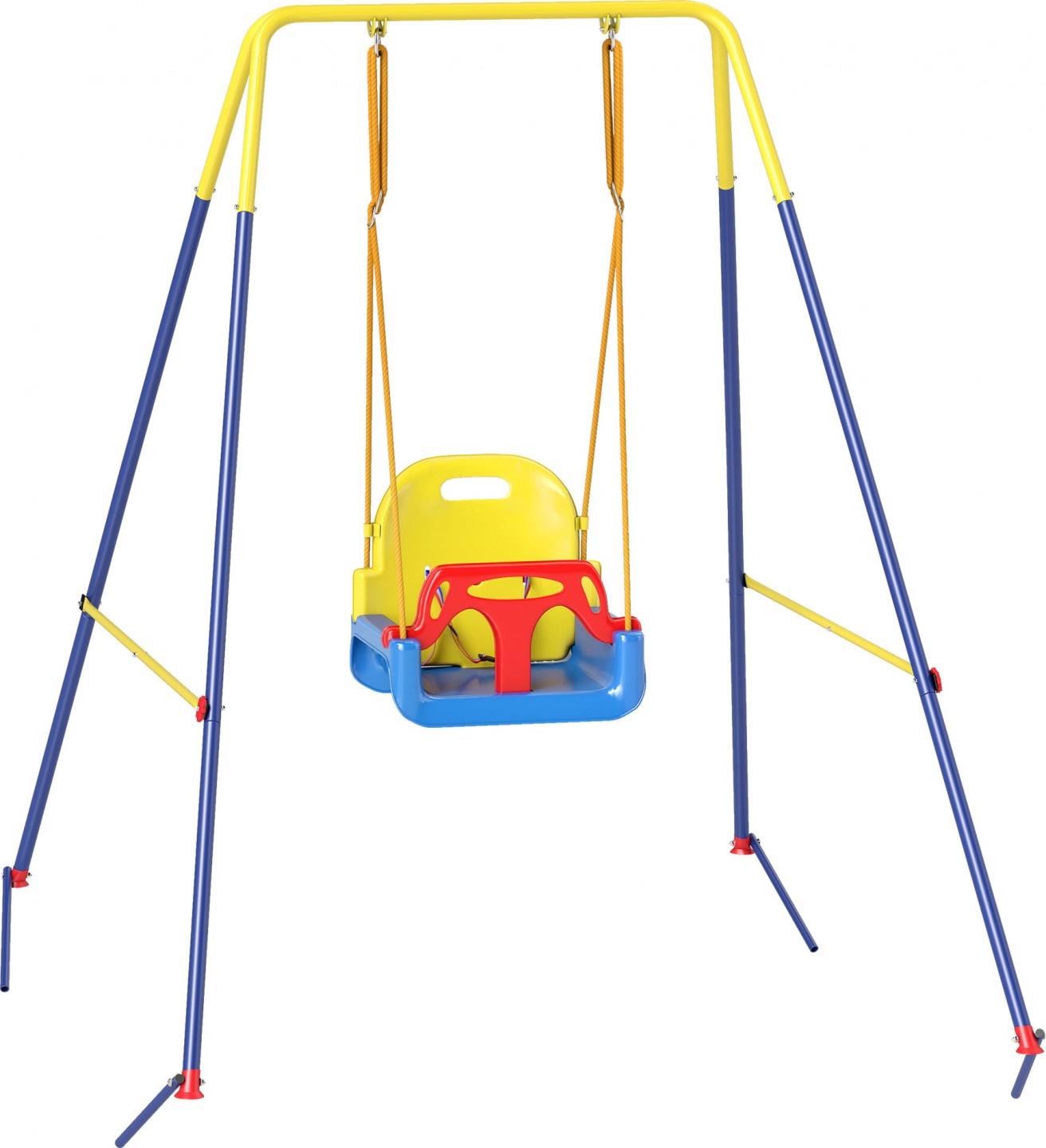 • Stabilní konstrukce rámu A s protiskluzovými podložkami pod nohy udržuje houpačku v bezpečí