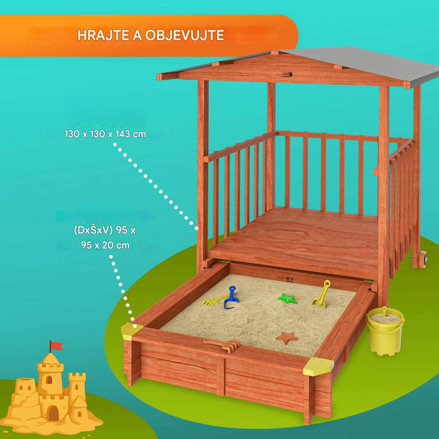 - Kromě klasického pískoviště i skvělý herní domeček na zahradu