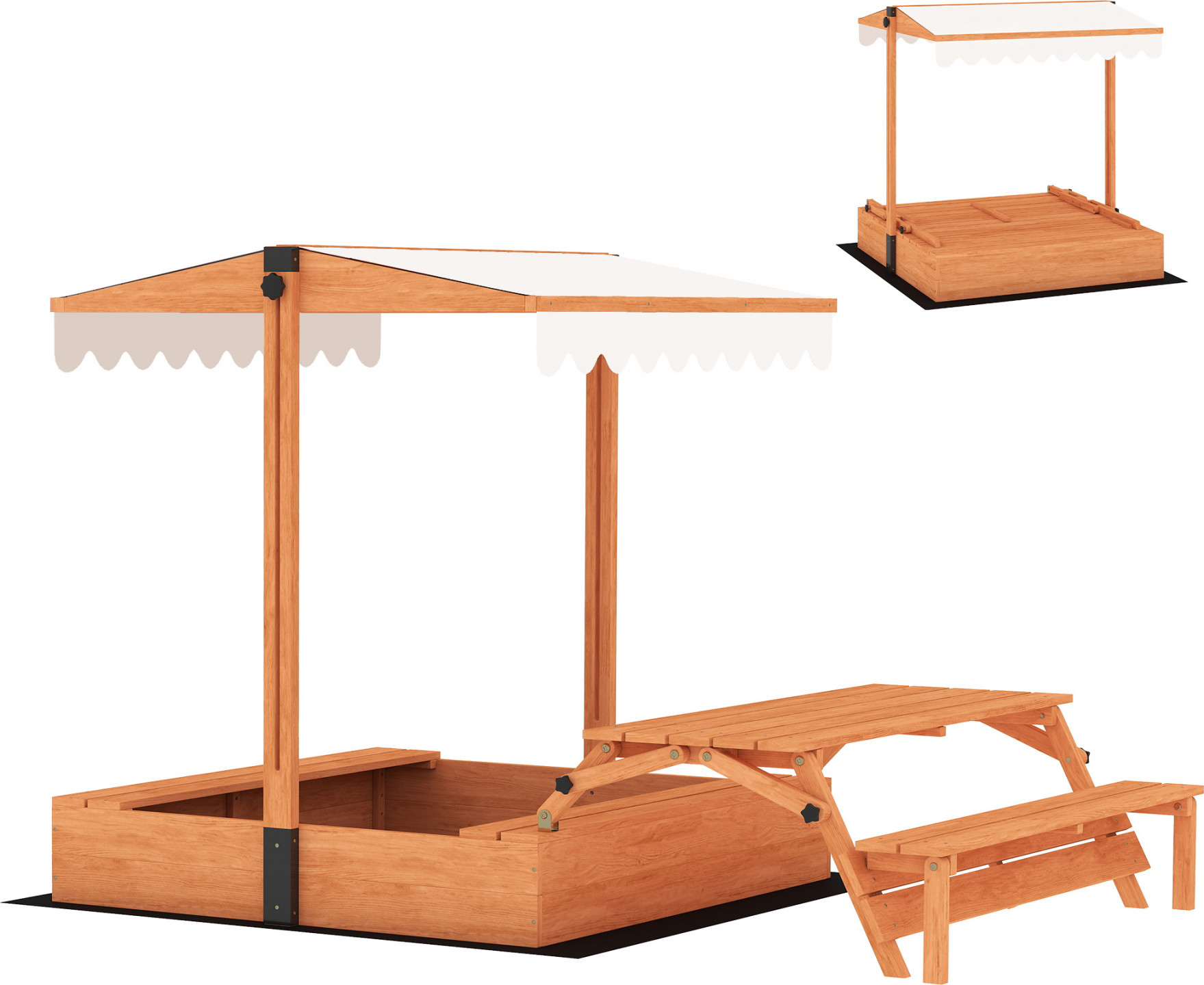 - Pískoviště se stříškou má nastavitelnou stříšku odolnou proti UV záření pro zábavu za každého počasí a nerušenou hru