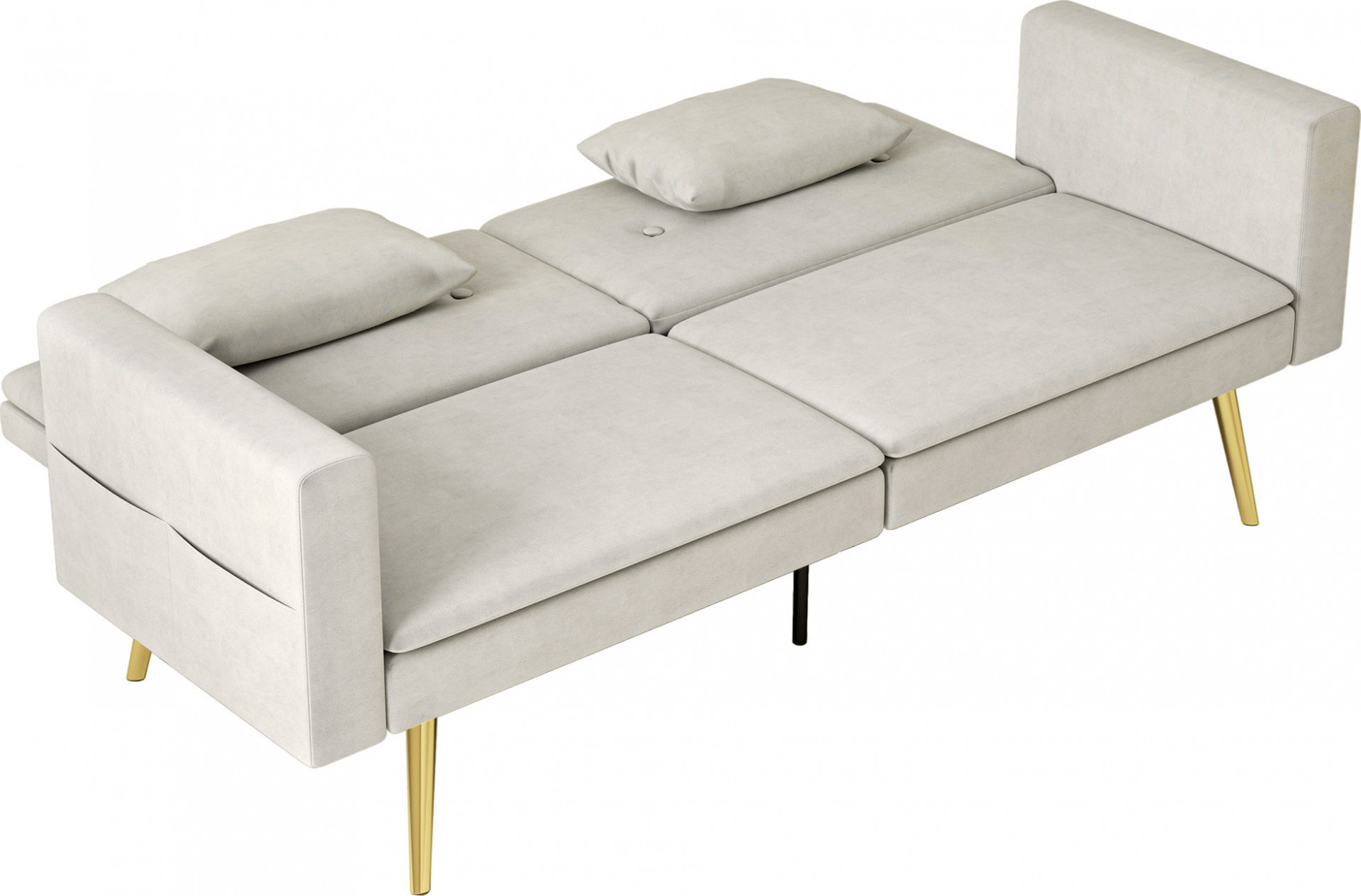 - Pohovku s funkcí spaní lze díky odnímatelným područkám přeměnit na dvojlůžko.