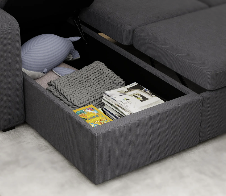 - Obsahuje skrytý úložný prostor, který udržuje v obývacím pokoji pořádek a přehlednost
