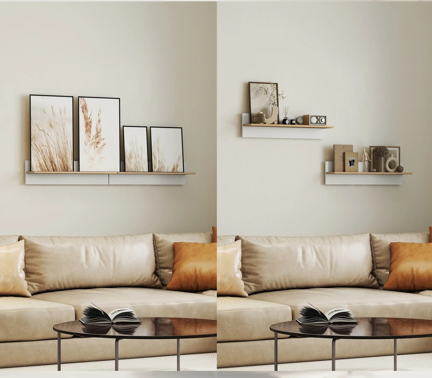 2 plovoucí police na zeď 80 x 16,5 x 20 cm | bílé + přírodní