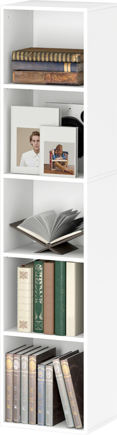 - Pět otevřených přihrádek pro uspořádání knih a dekorativních předmětů