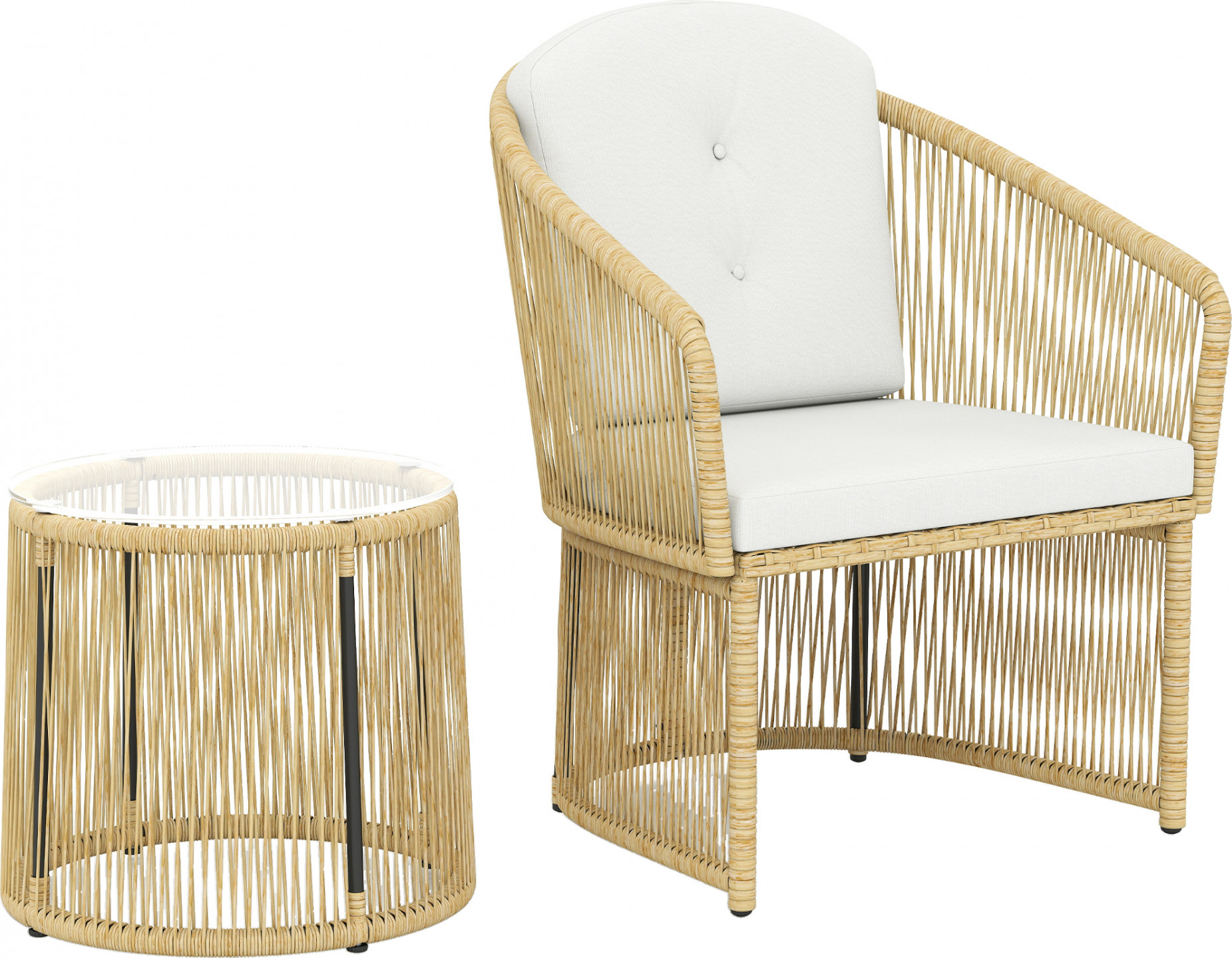 S nábytkem s krátkou životností je obtížné najít na zahradě útočiště. Sada ratanového zahradního nábytku promění vaši terasu nebo balkon v oázu. Je vyrobena z plastového ratanu odolného proti povětrnostním vlivům a robustní oceli a nabízí pohodlí díky sedacím a opěrným polštářům. Je ideální pro odreagování a užívání si přírodních živlů.