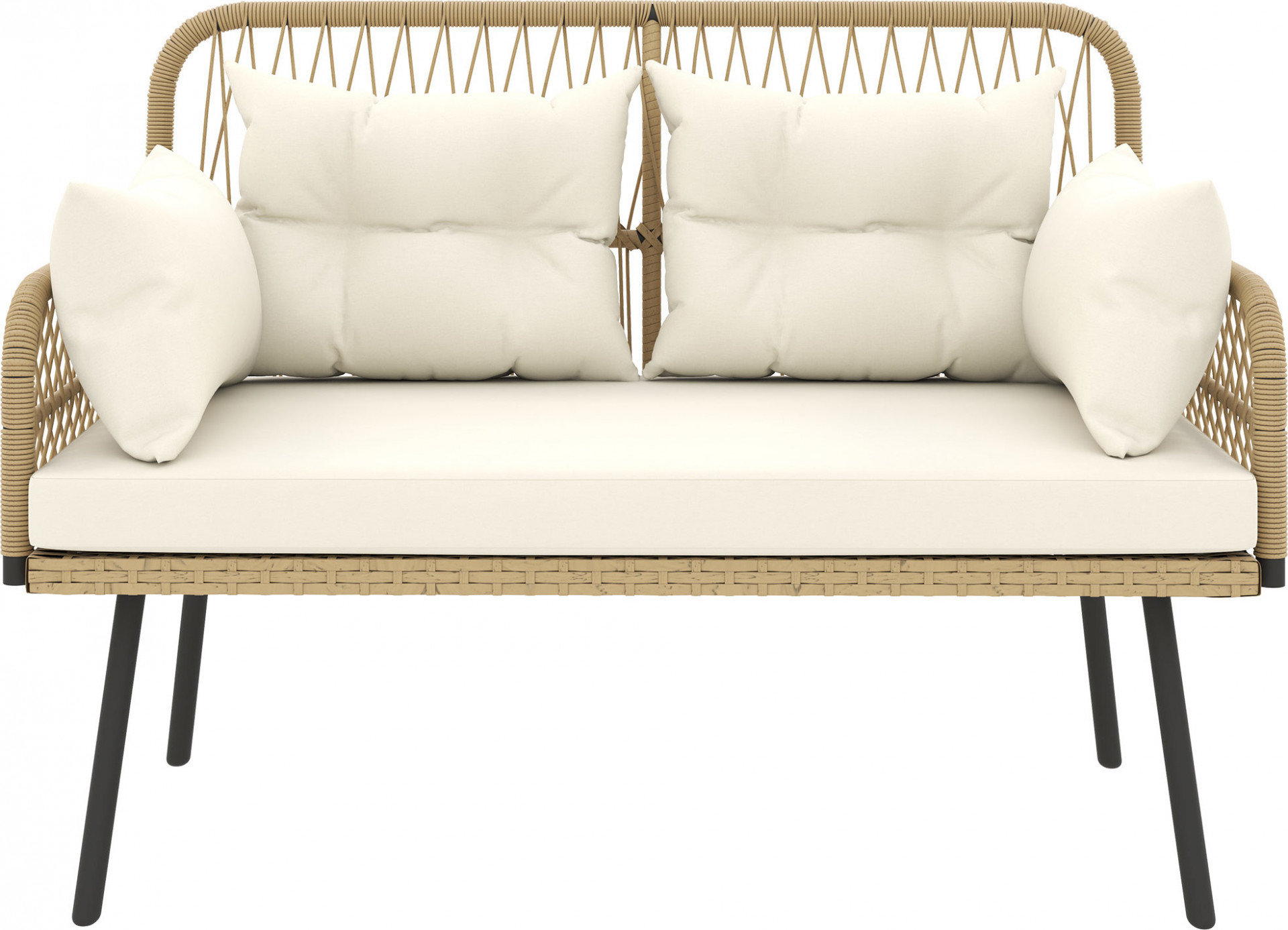 Užijte si příjemné hodiny venku s dvoumístnou zahradní pohovkou. Pozinkovaný ocelový rám s práškovým nástřikem poskytuje stabilní základnu, zatímco robustní plastová síťovina tvoří ochrannou vnější vrstvu. Silné polštáře a další polstrování poskytují vysokou úroveň pohodlí. Tato 2místná ratanová pohovka je vybavena protiskluzovými podložkami pod nohy, které chrání vaši podlahu.
