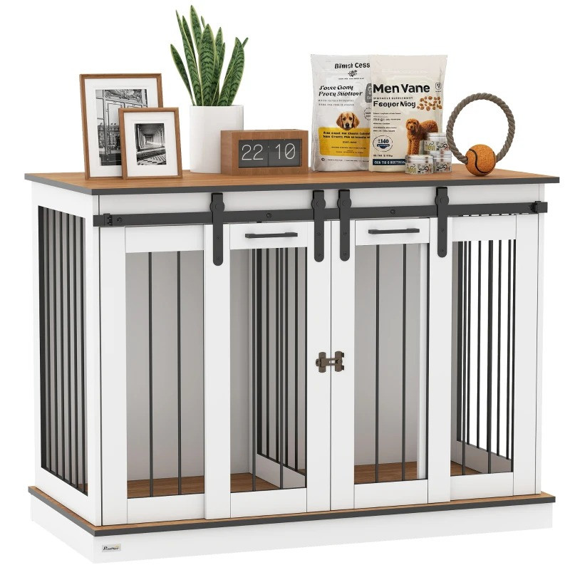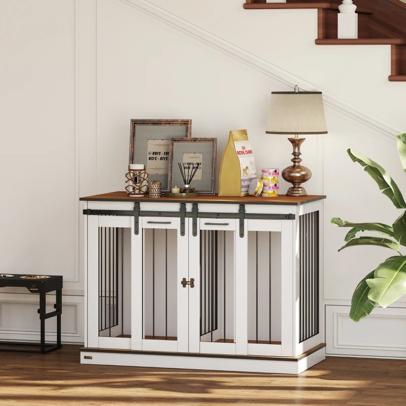 Náš dělený box pro domácí mazlíčky nabízí buď dvě malé místnosti, nebo se po odstranění středového panelu stane prostornou místností pro velké psy. Přepravka pro psy poslouží nejen vašemu mazlíčkovi, ale také vašemu interiéru. Posuvné dveře jsou opatřeny zámky.