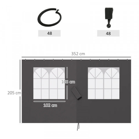 - Sada bočních panelů pavilonu se čtyřmi záclonami se dokonale hodí pro pavilony o rozměrech 3 x 4 metry.