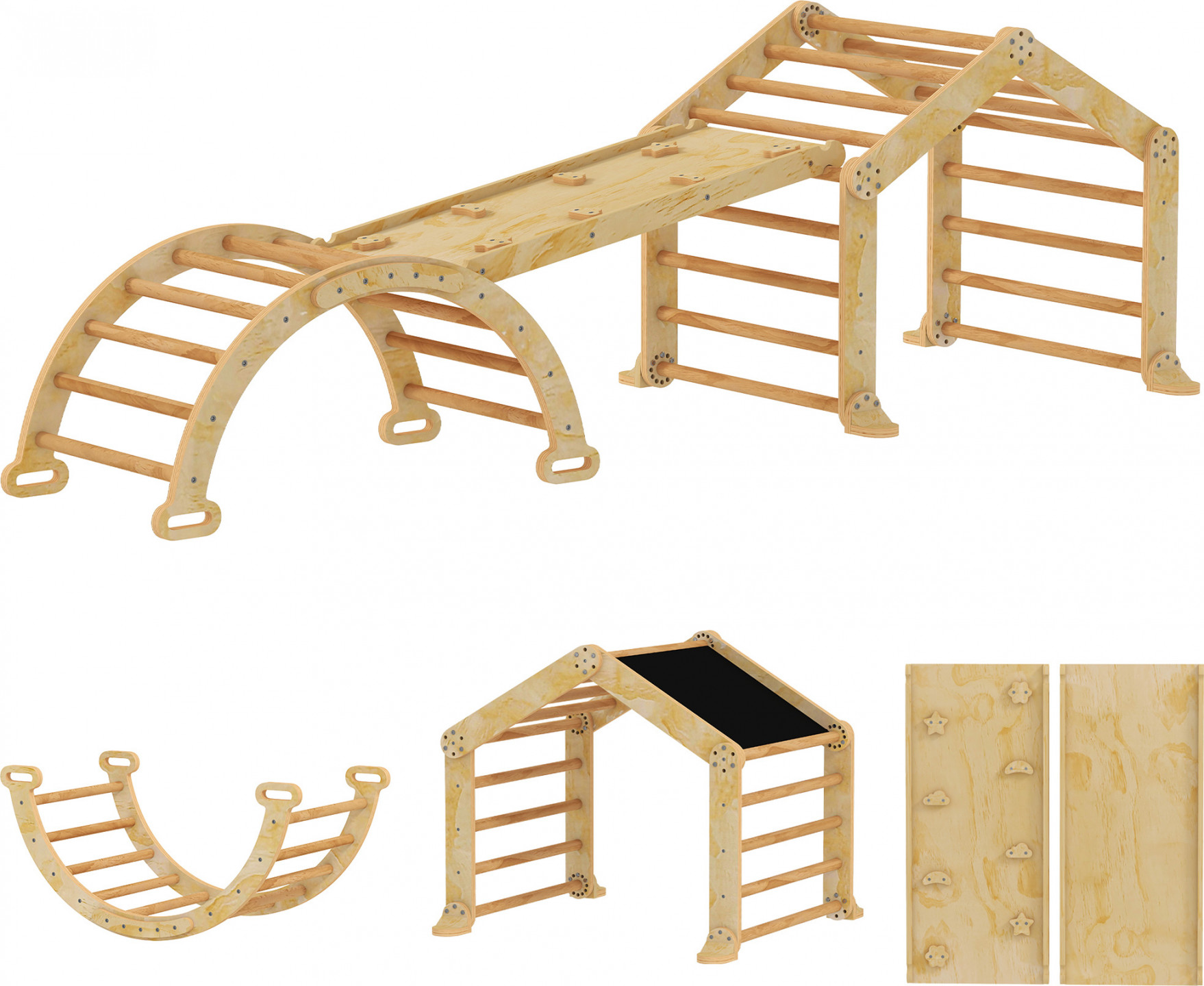 Dřevěná Montessori prolézačka 9v1 | přírodní