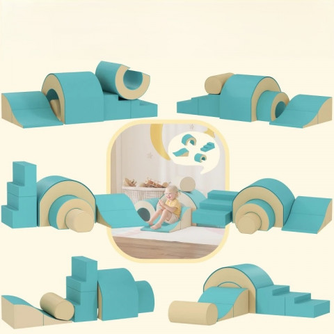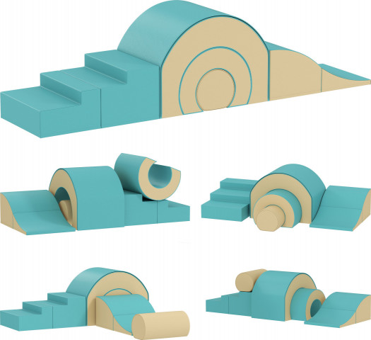 Velké dětské stavebnice z umělé kůže a pěny EPE vytvářejí měkký, ochranný povrch pro jemnou pokožku. Pět modulů - oblouk, půlkruh, rampa, svah a schůdky - podporuje kreativitu a rozvoj motoriky. S touto flexibilní sadou měkkých stavebních bloků proměníte svůj domov v nápaditý a bezpečný hrací koutek.