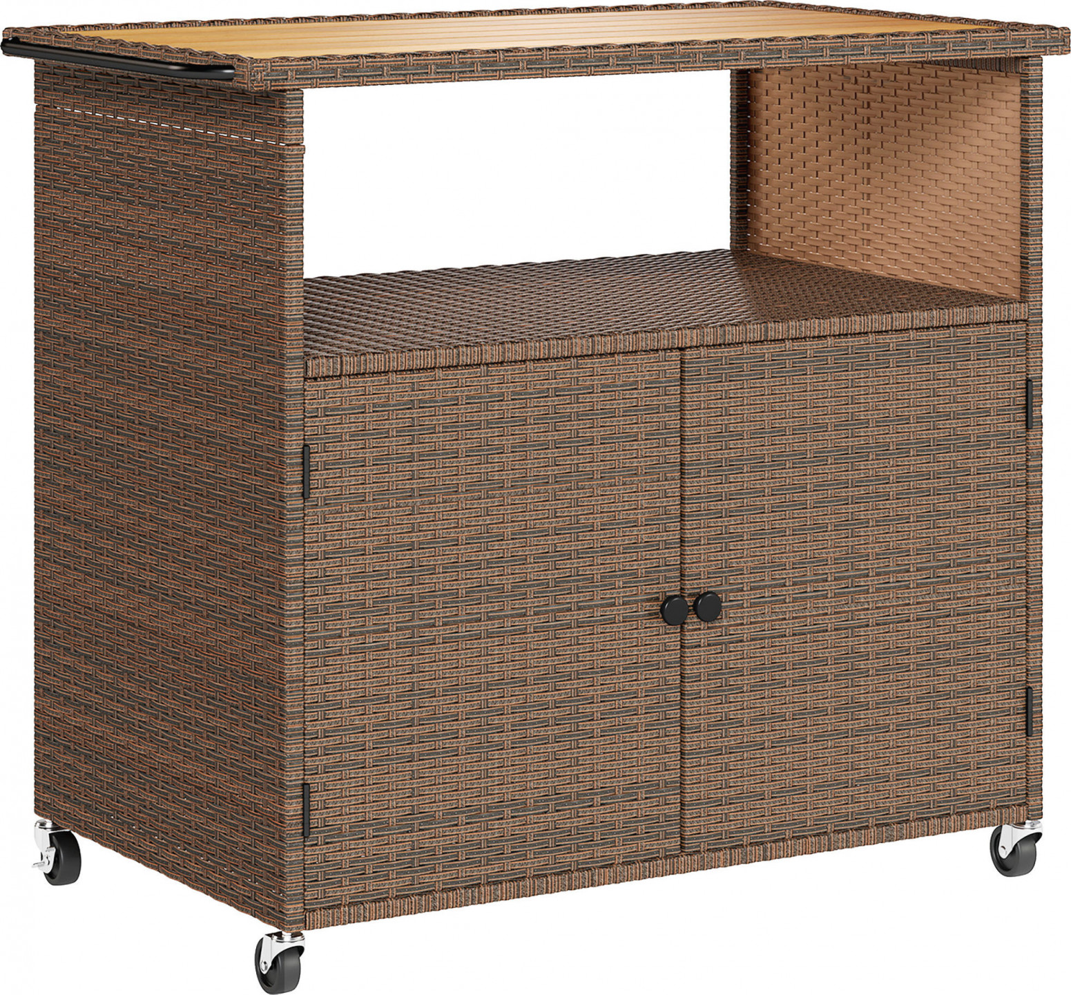 Ratanový kuchyňský vozík s pracovní deskou | hnědý