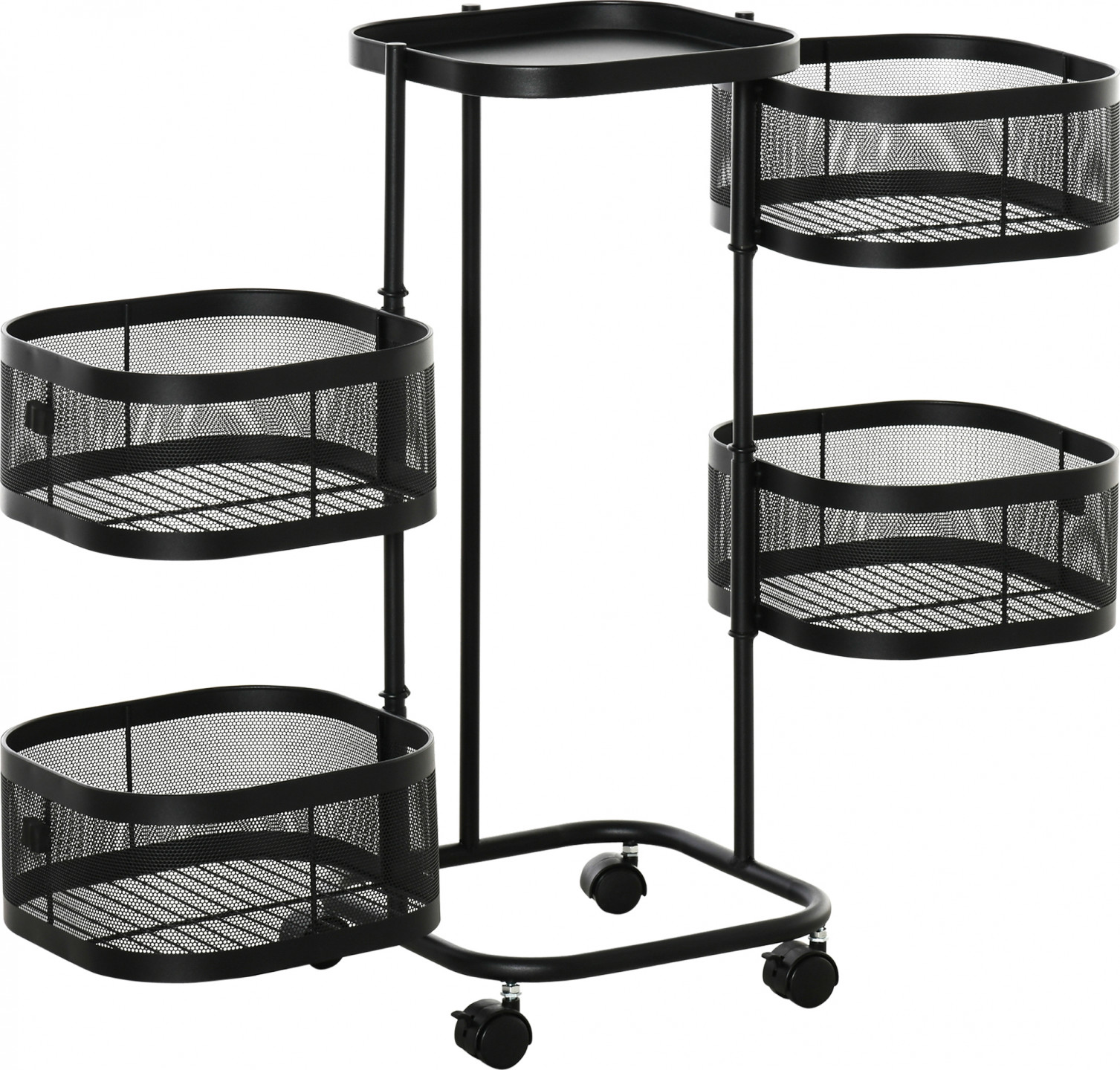 Tento servírovací vozík je ideální pro uložení velkého množství předmětů v malém prostoru. Čtyři koše nabízejí dostatek prostoru pro veškeré příslušenství. Díky kompaktnímu designu a flexibilním kolečkům lze tento kuchyňský vozík snadno přemisťovat z jedné místnosti do druhé. Je ideální jako noční stolek v ložnici, kuchyňský vozík, vozík na nářadí a mnoho dalšího.