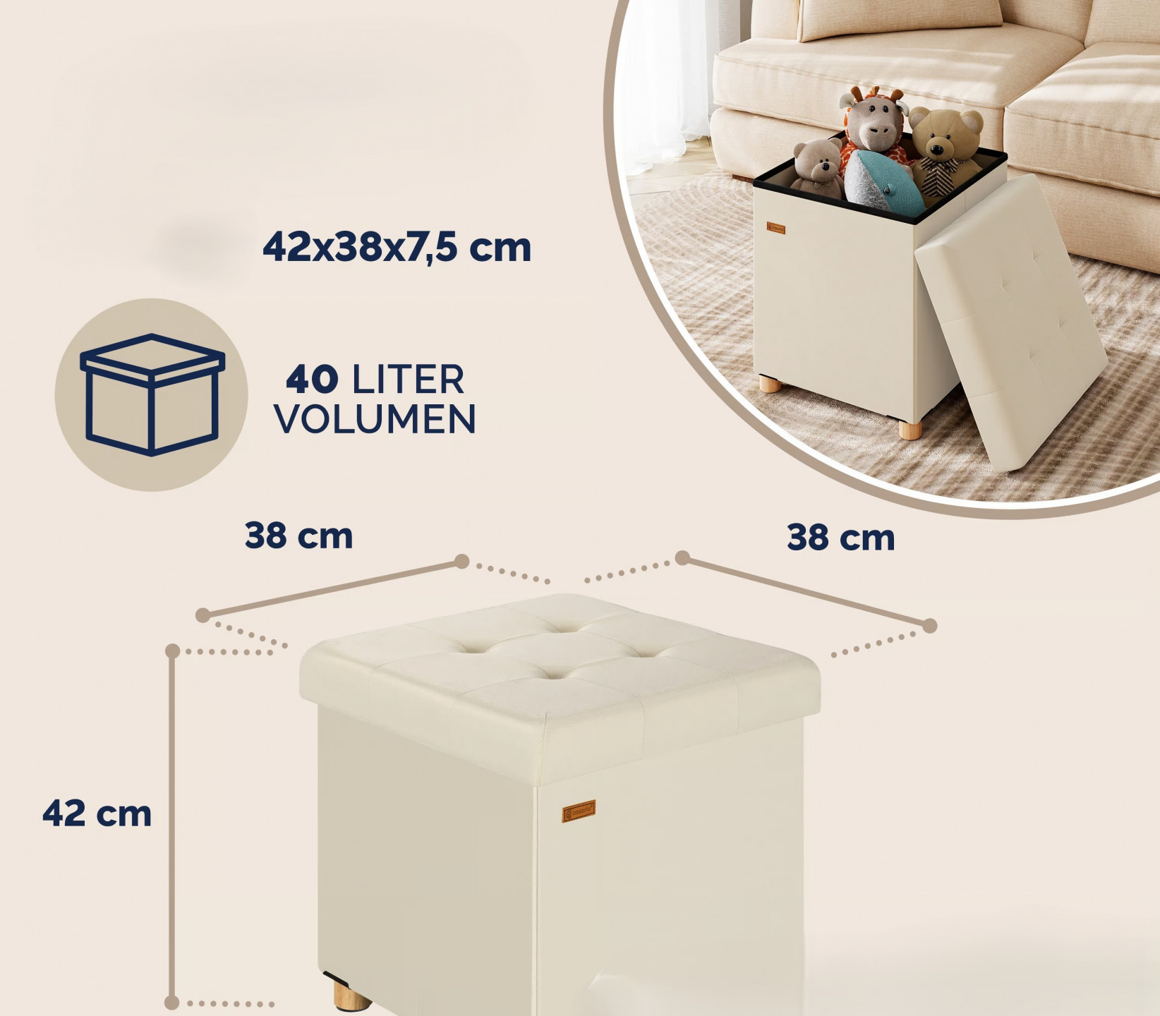 - Rozměry bez nožiček : 38 x 38 x 38 cm