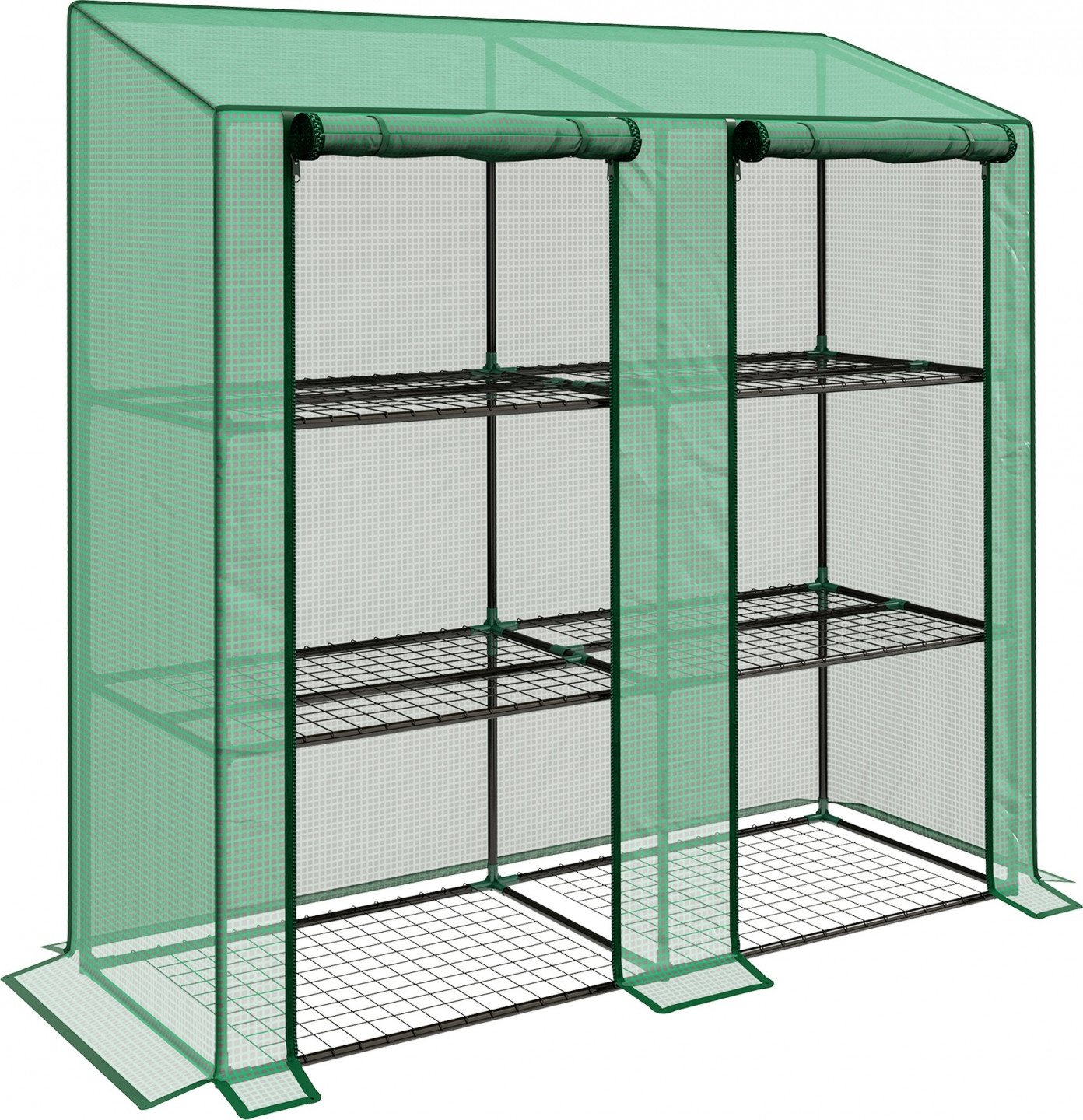 Zapomeňte na to, že by vaše pečlivě ošetřované rostliny a květiny mohly zmrznout! Představujeme vám kompaktní fóliovník na rajčata s třípatrovou policí na květiny, který je ideální pro zahradníky všech úrovní zkušeností. PE kryt se dvěma rolovacími dveřmi vnitřního skleníku podporuje optimální teplotu a vlhkost pro růst rostlin. Jednoplášťová střecha zabraňuje stagnaci vody. Vyzkoušejte si zahradnické umění s malým skleníkem.
