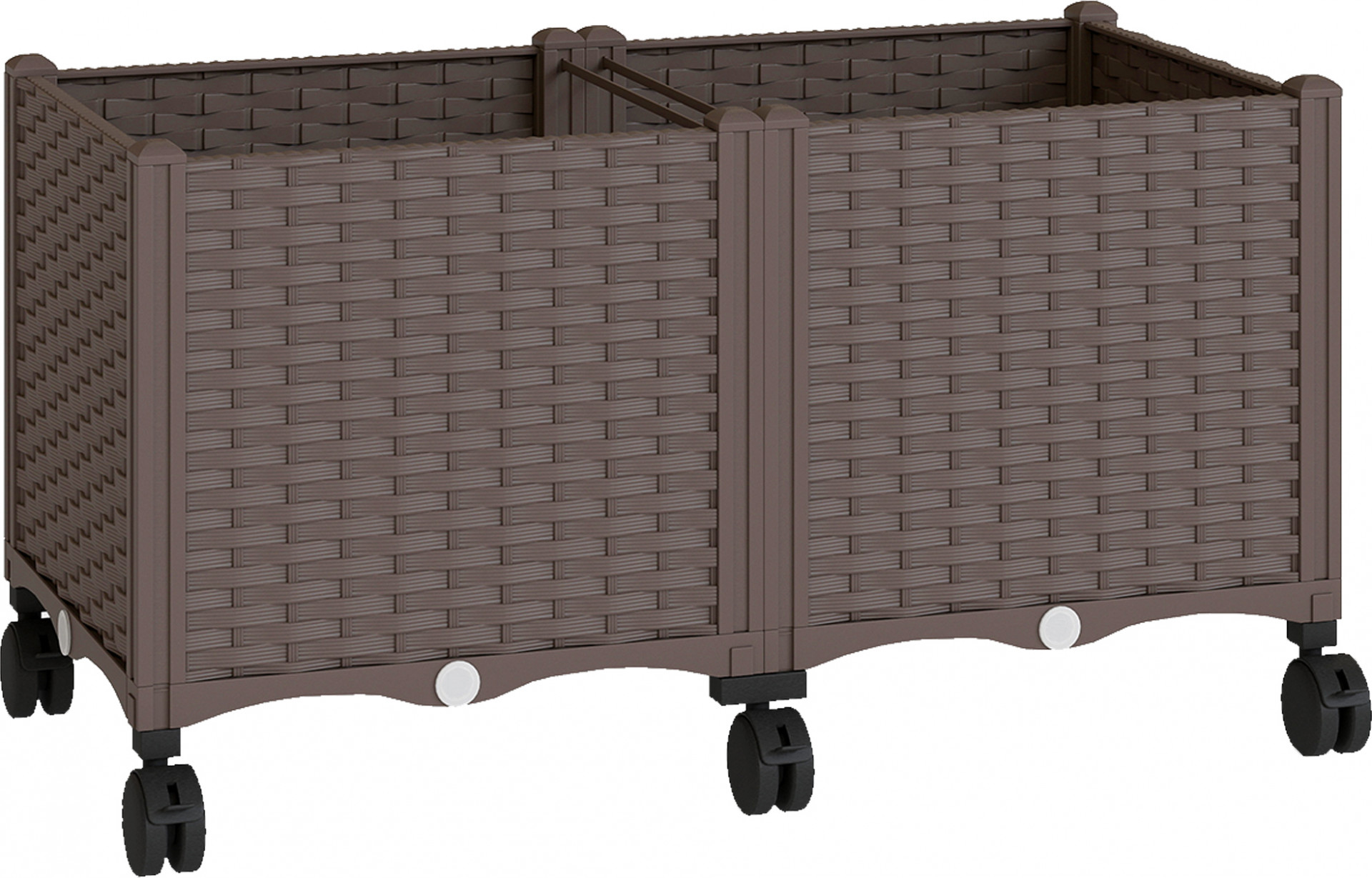Vyvýšený záhon nabízí dostatek prostoru pro květiny, zeleninu a bylinky. Samozavlažovací systém s drenážními otvory udržuje rostliny hydratované bez větší námahy. Šest hladce se pohybujících koleček, z nichž čtyři mají brzdy, zajišťuje flexibilní umístění na slunečním světle. Díky odolnému plastovému materiálu a montáži bez použití nářadí je tento plastový vyvýšený záhon ideální pro celoroční venkovní použití.