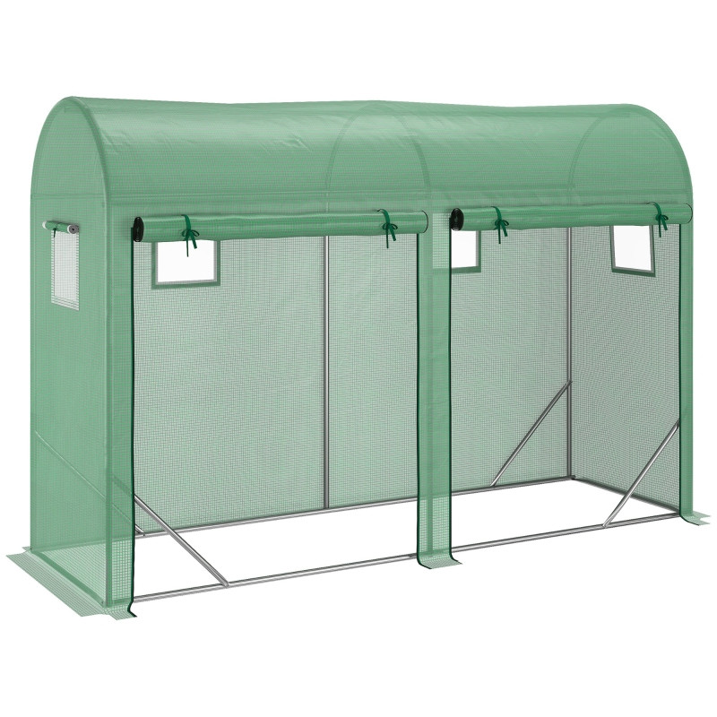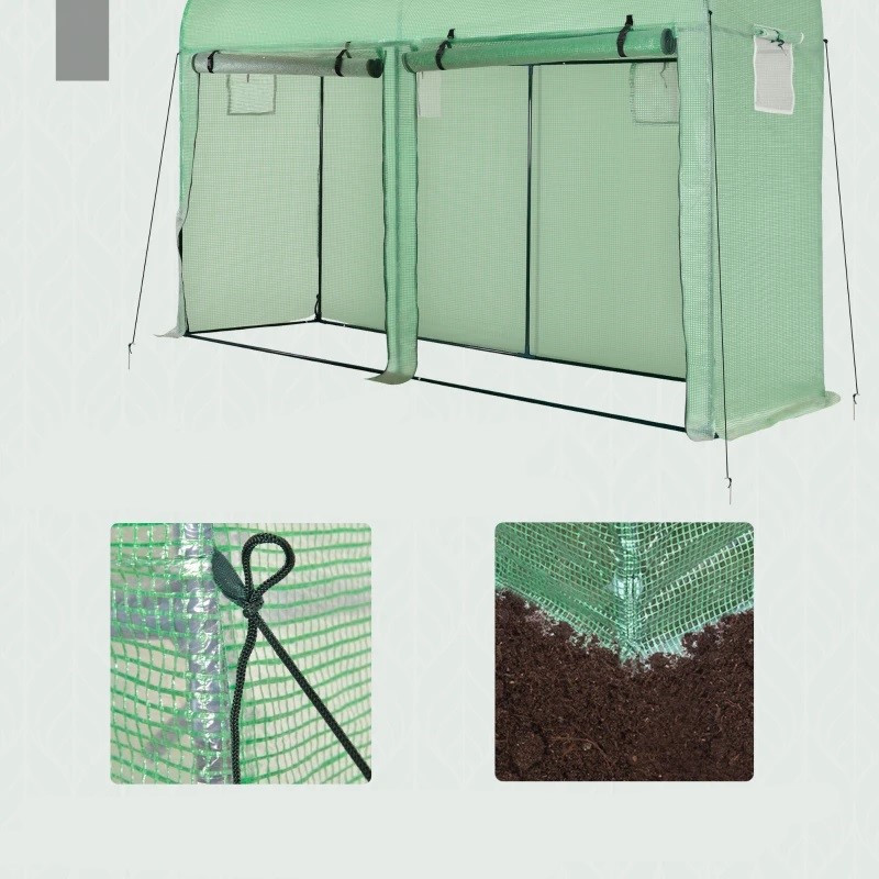 Perfektní volba pro ty, kteří mají rádi zahradničení. Plastový kryt je chráněn proti UV záření, aby rostlinu chránil před škodlivými paprsky. Robustní ocelový rám zajišťuje pevnost a stabilitu. Dvojitá rolovací vrata a 4 okna zajišťují dobrou cirkulaci vzduchu a dostatek slunečního svitu pro zdravý růst vašich rostlin.