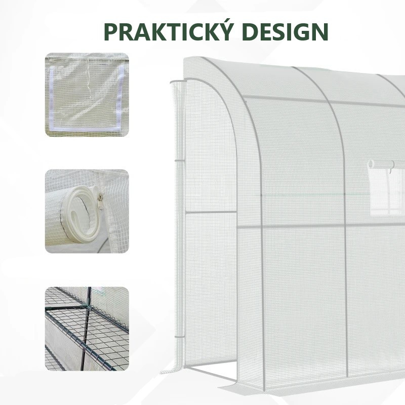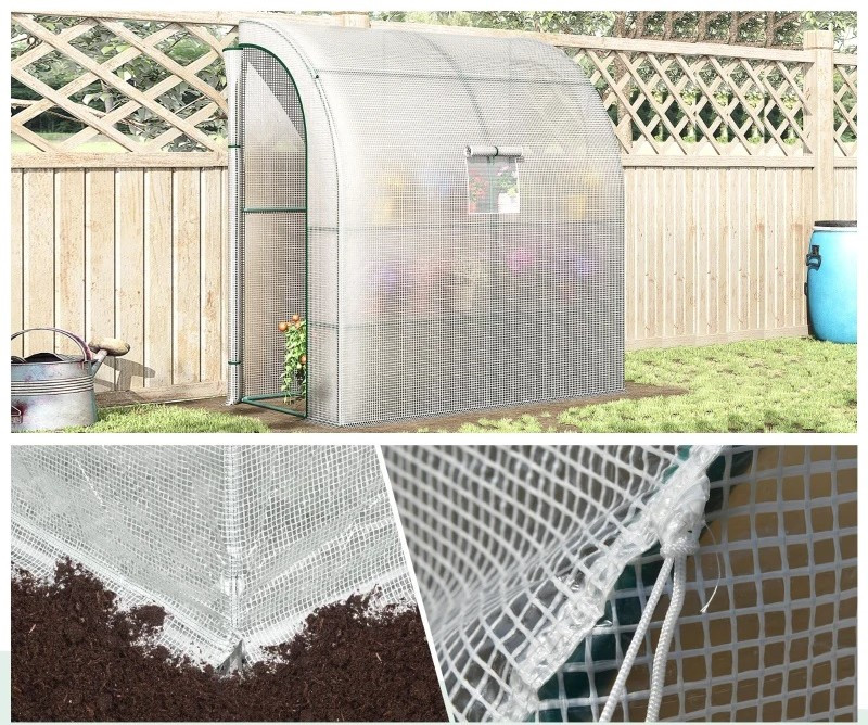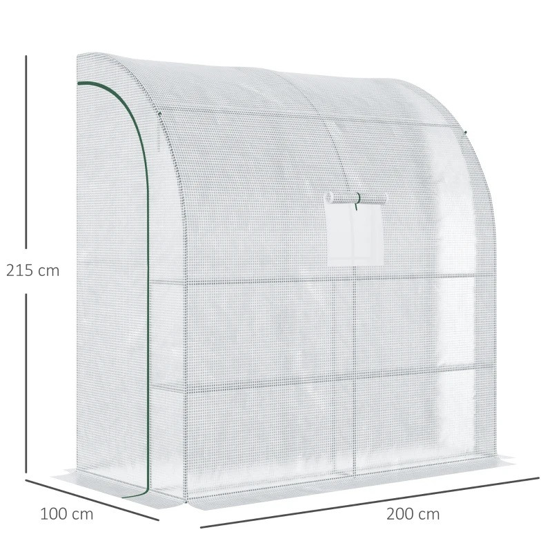Pochozí skleník je nutností pro všechny hobby zahrádkáře. Můžete v ní vysévat semínka zeleniny nebo pěstovat květiny. PE kryt znamená, že vaše rostliny jsou chráněny před živly, ale stále mají dostatek slunce, aby rostly a prosperovaly. Skleník má dvoje dveře a jedno okno. Je vybavena čtyřmi policemi.
