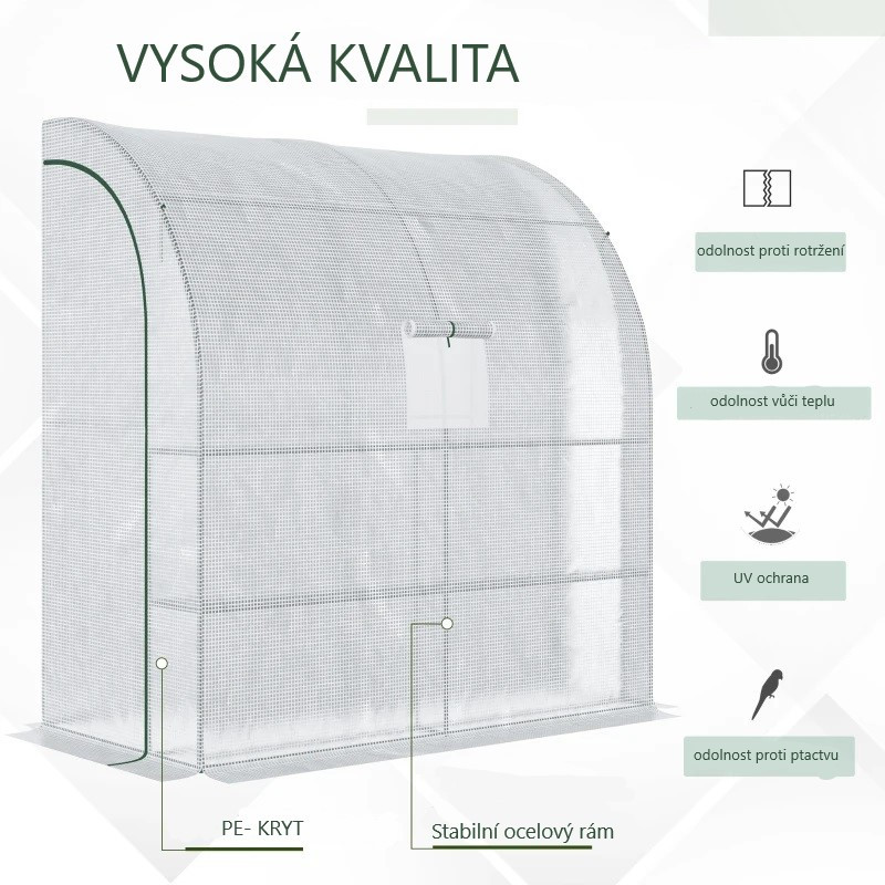 - PE kryt chrání před povětrnostními vlivy, propouští sluneční světlo a udržuje teplo uvnitř