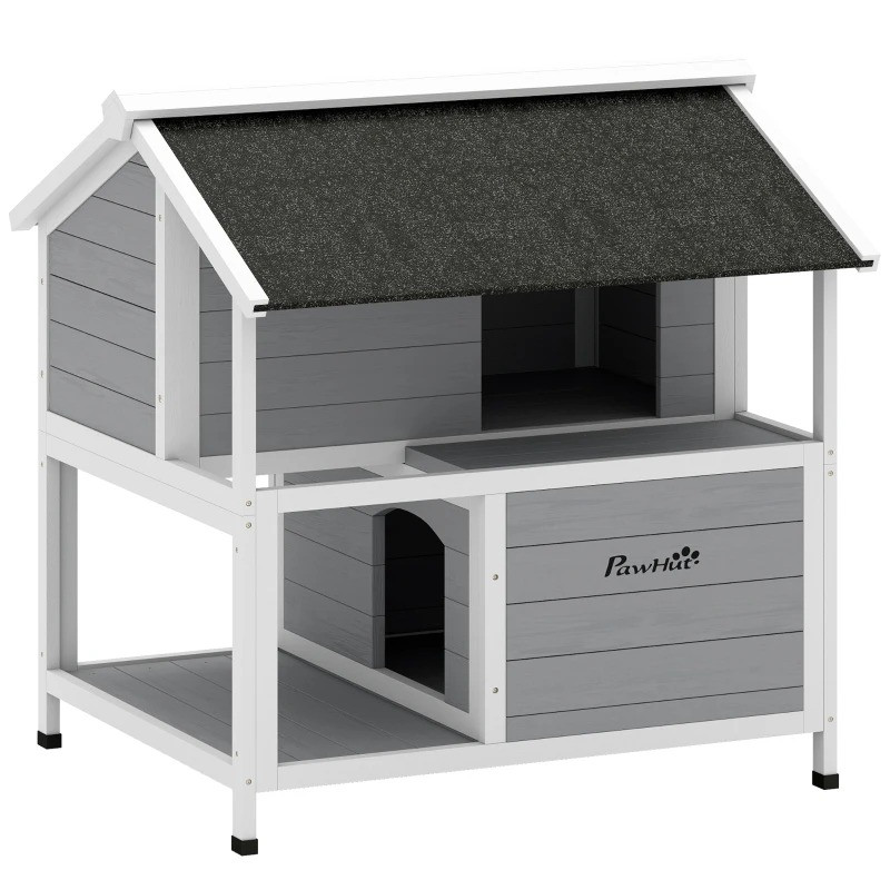 Obáváte se toulavých koček ze sousedství, které vám během bouřky nedají spát? Zateplený dvoupatrový venkovní domek pro kočky nabízí ochranu a útulný úkryt odolný proti povětrnostním vlivům. Díky šikmé střeše a izolaci kočičí jeskyně zůstane několik koček v suchu a bezpečí.