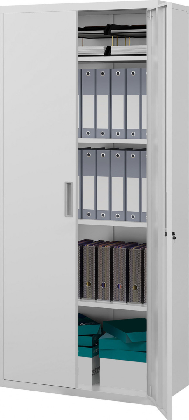 Každé pracoviště potřebuje bezpečné místo pro ukládání dokumentů. S archivační skříní můžete stylově zdůraznit velikost. Vysoká kovová skříň má pět vnitřních polic, z nichž čtyři jsou nastavitelné, aby se do nich vešly malé i velké předměty. Dvoje uzamykatelné dveře zaručují bezpečnost. Díky konstrukci z práškově lakované oceli je tato kancelářská skříň mimořádně robustní a odolná.