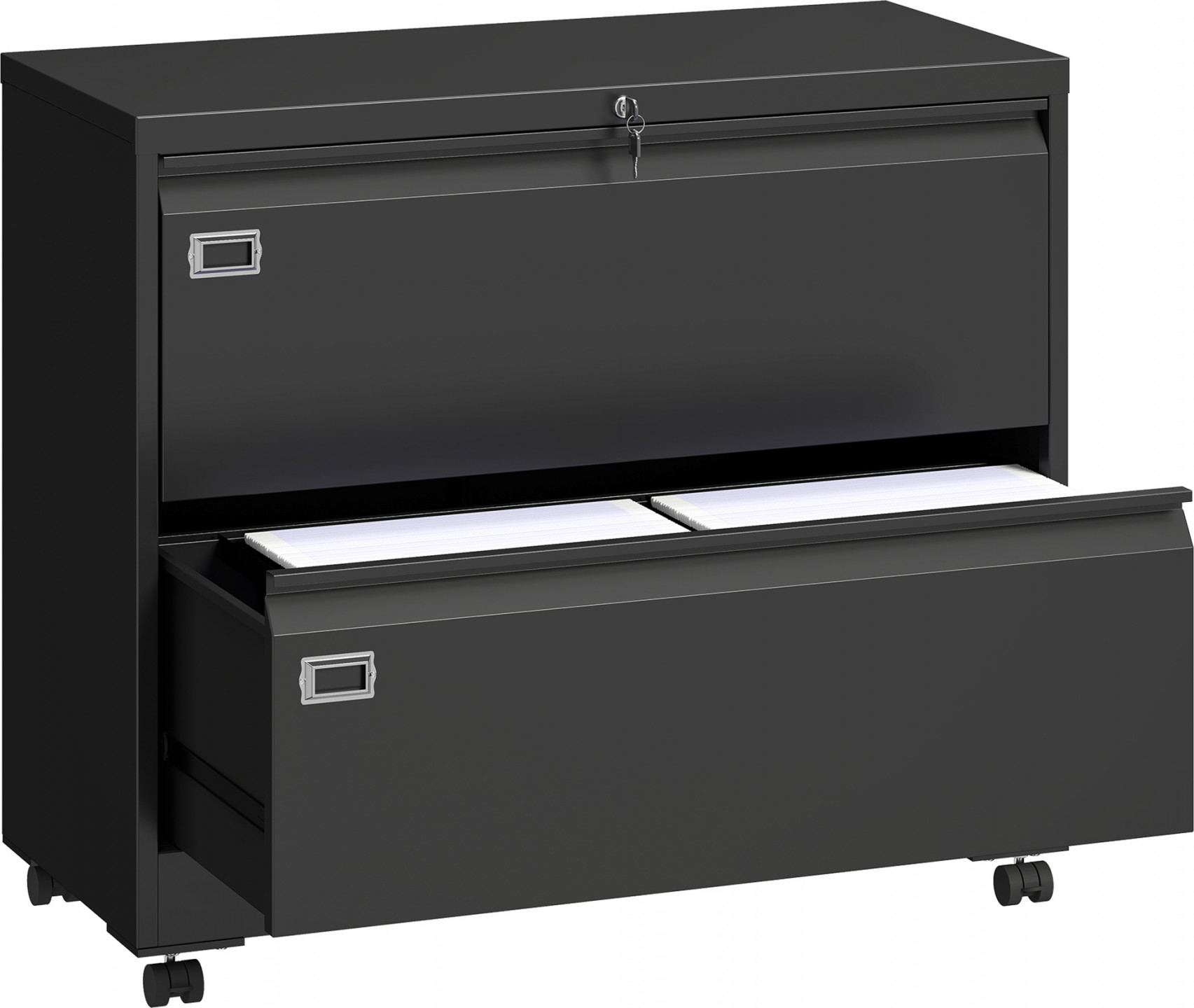 Papírování se rychle hromadí, narušuje vaši koncentraci a zpomaluje váš den. Kartotéka vytvoří pořádek: pro dokumenty formátu A4, dopisní a právní dokumenty, s centrálním zámkem a ochranou proti převrácení. Robustní ocelová konstrukce, kolečka a popisovací zásuvky usnadňují práci s dokumenty a přinášejí do vašeho pracovního prostoru klid a pohodu.