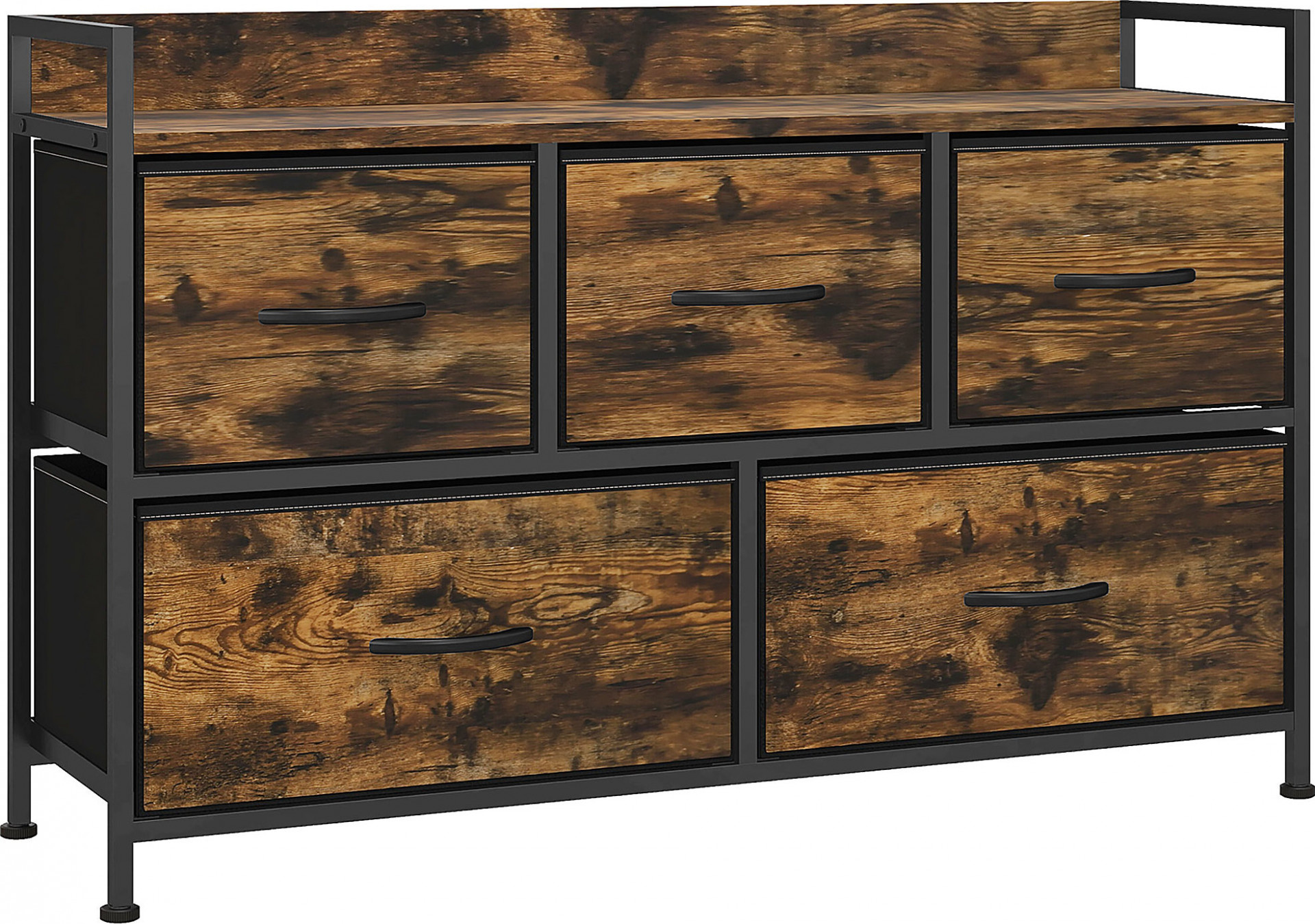 Komoda s 5 látkovými zásuvkami | rustikálně hnědá