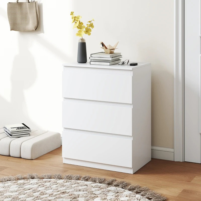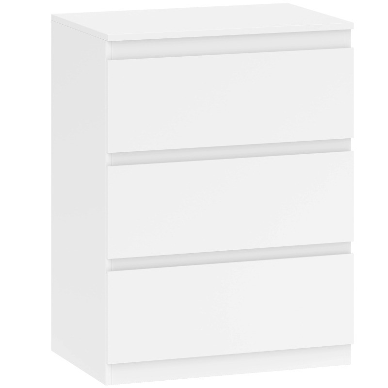 Začněte svůj den organizovaně a bez námahy: komoda bez úchytek uspořádá oblečení a doplňky ve třech hladce se pohybujících zásuvkách. Zkosené hrany usnadňují otevírání. Její čistě bílé provedení působí moderně a svěže a skvěle se hodí do ložnic, předsíní, obývacích pokojů nebo pokojů pro hosty a zajistí klid a pohodlí v každodenním životě.