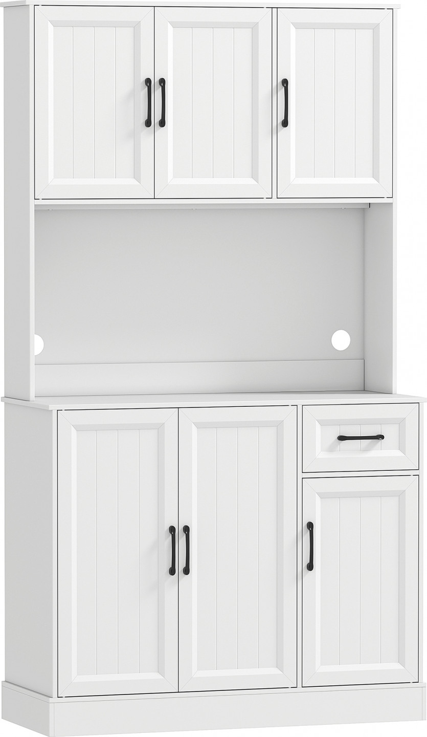 S touto kuchyňskou skříňkou snadno zorganizujete každodenní kuchyňský chaos. Čtyři skříňky a hladce posuvná zásuvka poskytují prostor pro kuchyňské náčiní, nádobí a zásoby. Nastavitelné police bufetové skříňky si můžete přizpůsobit a vysoký design skříňky dodá vaší domácnosti hřejivý, moderní vzhled.