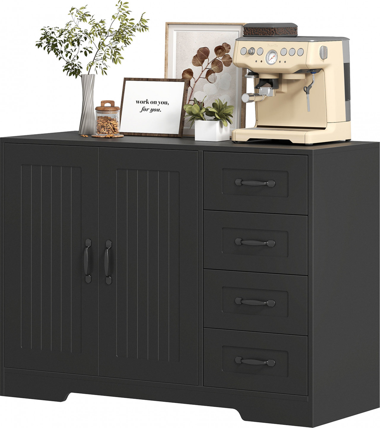 - Velký úložný prostor komody se dvoudveřovou skříňkou a čtyřmi zásuvkami pro vaše každodenní potřeby.