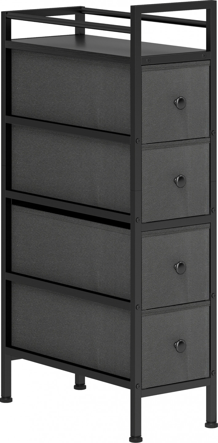 Trápí vás ta nepříjemná úzká mezera vedle pohovky nebo postele? Tyto úzké plochy často končí jako neužitečné mrtvé zóny. Získejte je zpět s úzkou látkovou komodou. Čtyři hluboké zásuvky předsíňové skříně uspořádají vše potřebné, zatímco robustní rám bezpečně podepře vaše věci. Vneste konečně do nevyužívaných koutů klid a pořádek a vytvořte si tak atraktivní a funkční prostory svého domova s úzkou komodou.