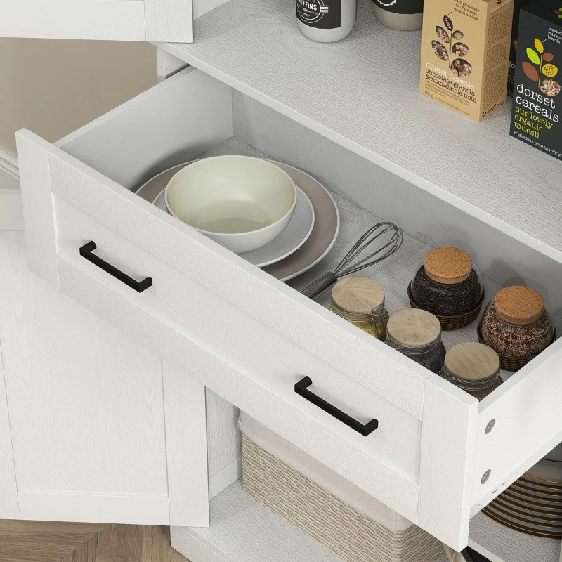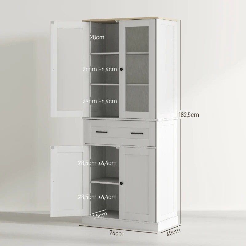 Rádi pracujete v kuchyni, ale dochází vám místo? Tato kuchyňská skříňka v moderním stylu vám pomůže uklidit kuchyň během chvilky. Už nebudete muset skládat všechny hrnce a pánve na sebe, abyste se dostali k jednomu hrnci na polévku vzadu. Tato spížní skříňka vám poskytne prostor, který potřebujete k uspořádání všeho. S touto vitrínou budete mít více času na vaření a vychutnávání pokrmů.