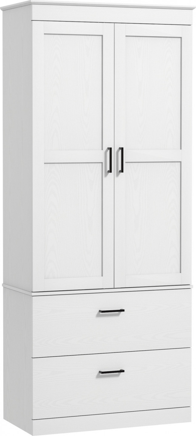 Objevte venkovský půvab s naší spižírnou: díky velké skříni a dvěma širokým zásuvkám máte dostatek místa pro mnoho nádobí. Její jedinečný design s černými úchytkami ve tvaru U a dvířky typu shaker se bez problémů začlení do každé kuchyně. Flexibilní využití prostoru a individuální možnosti ukládání zajišťují také nastavitelné police na spižírně.