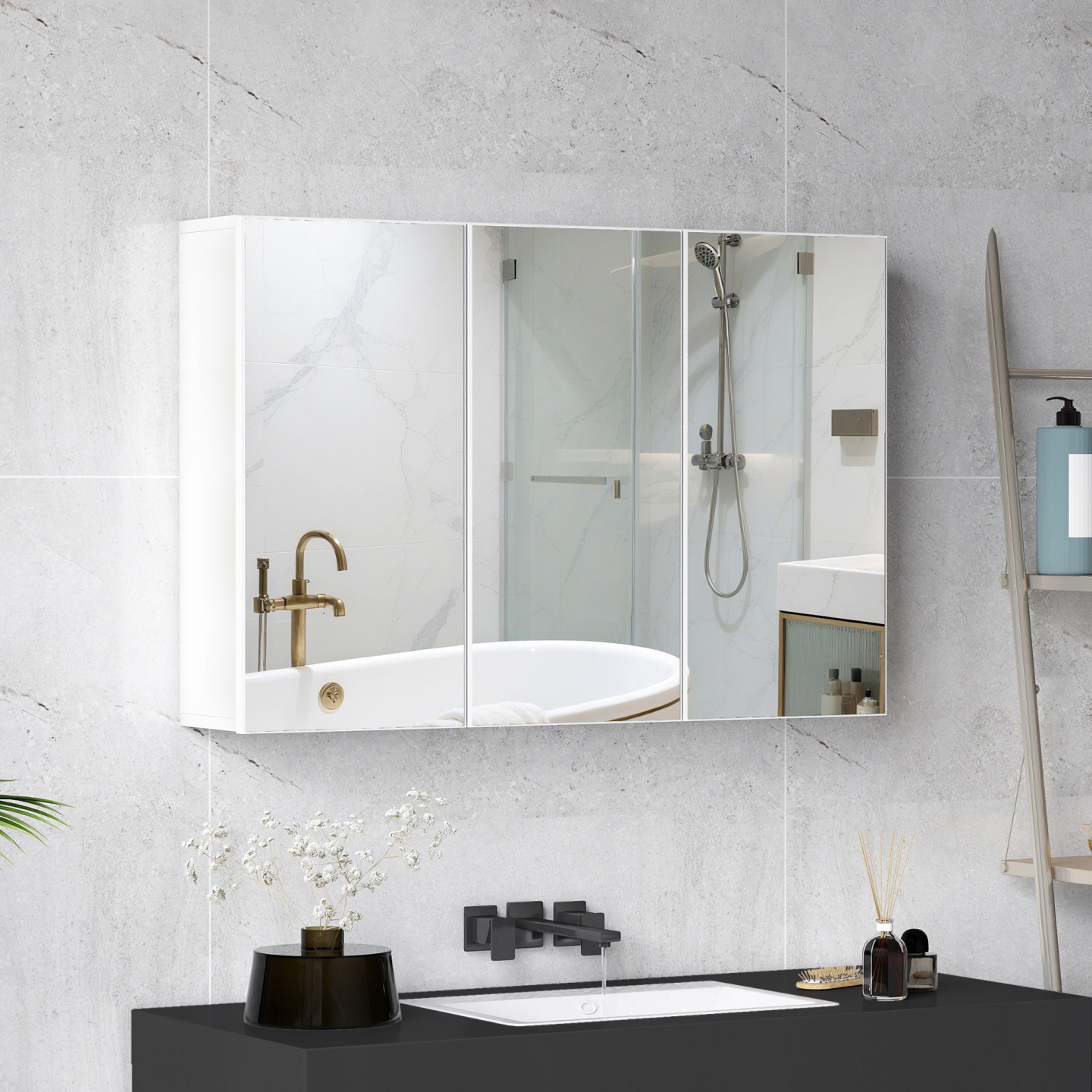 Koupelnová zrcadlová skříňka se 3 dvířky, 90 x 15,5 x 60 cm | bílá