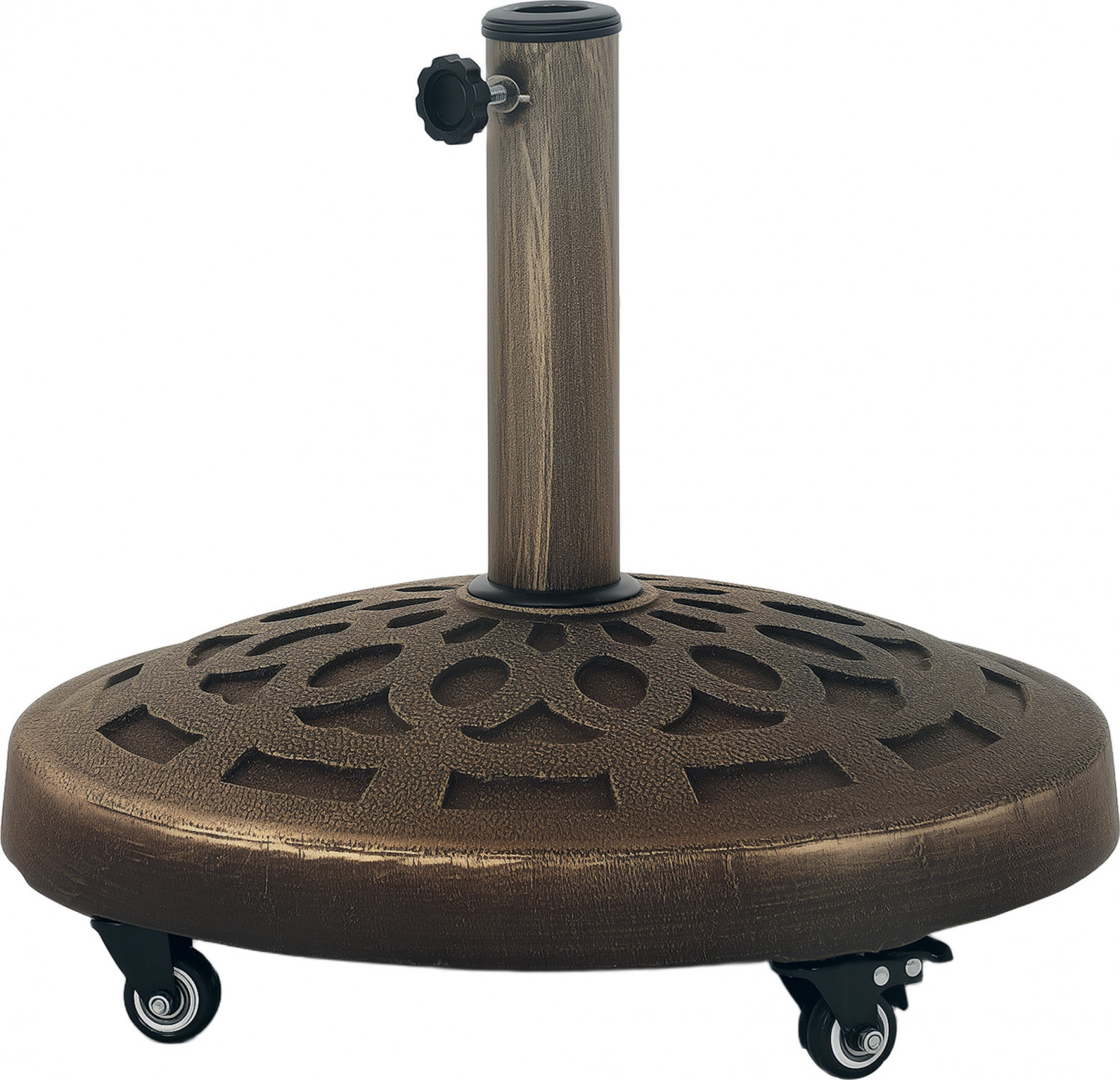 Zažijte venkovní životní styl bez spálení od slunce se stylovým stojanem na slunečník na kolečkách. Design stojanu na slunečník s povrchem připomínajícím květiny se skvěle hodí na zahradu nebo na terasu. Zkombinujte slunečník, stolek a židle a vytvořte si oázu pohody. Zatížený stojan drží slunečník bezpečně a stabilně pro optimální zastínění. Užívejte si pohodlí stojanu na slunečník venku.
