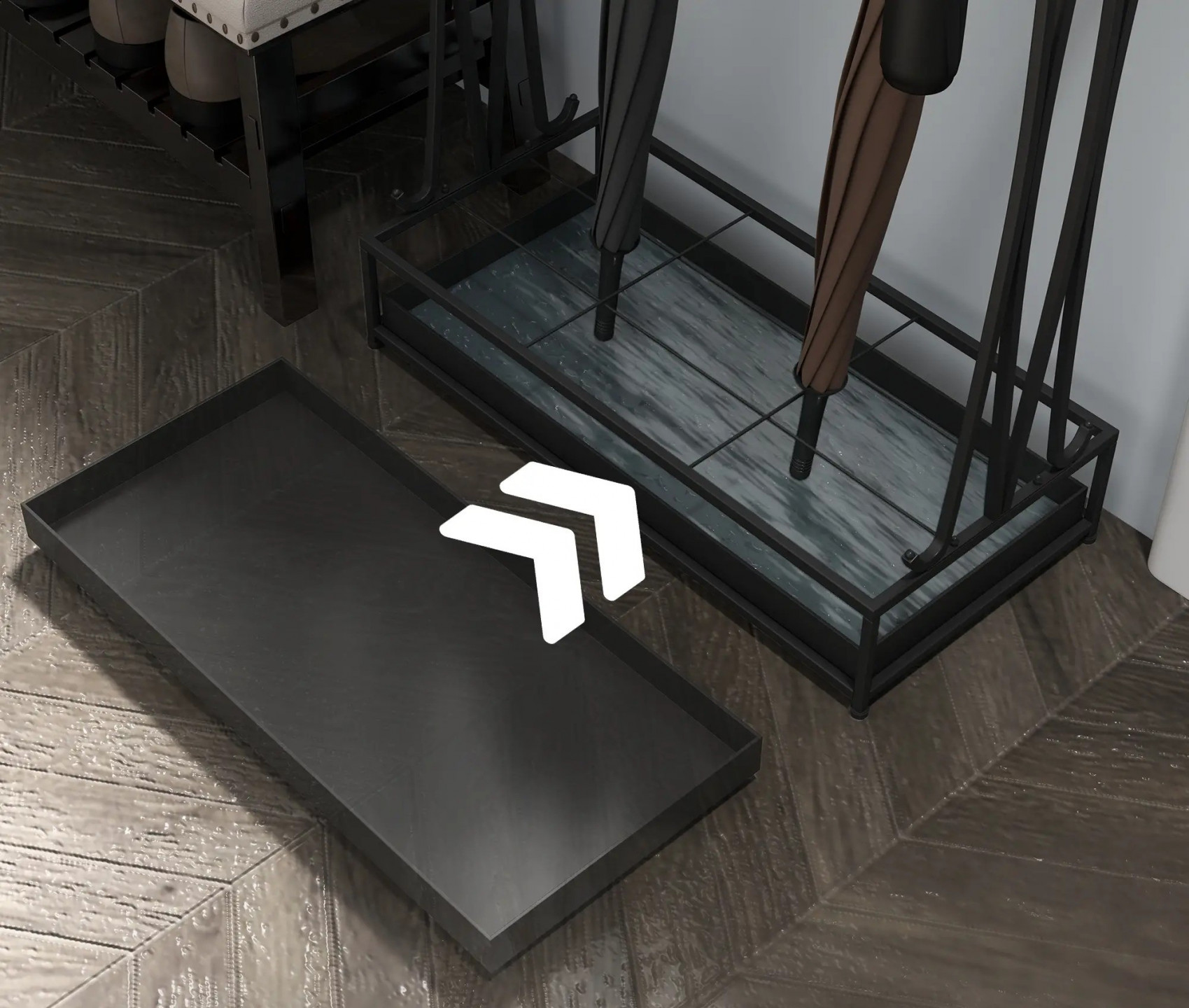 - Přídavný odkapávač na stojanu na deštníky zachycuje dešťovou vodu a udržuje podlahu suchou