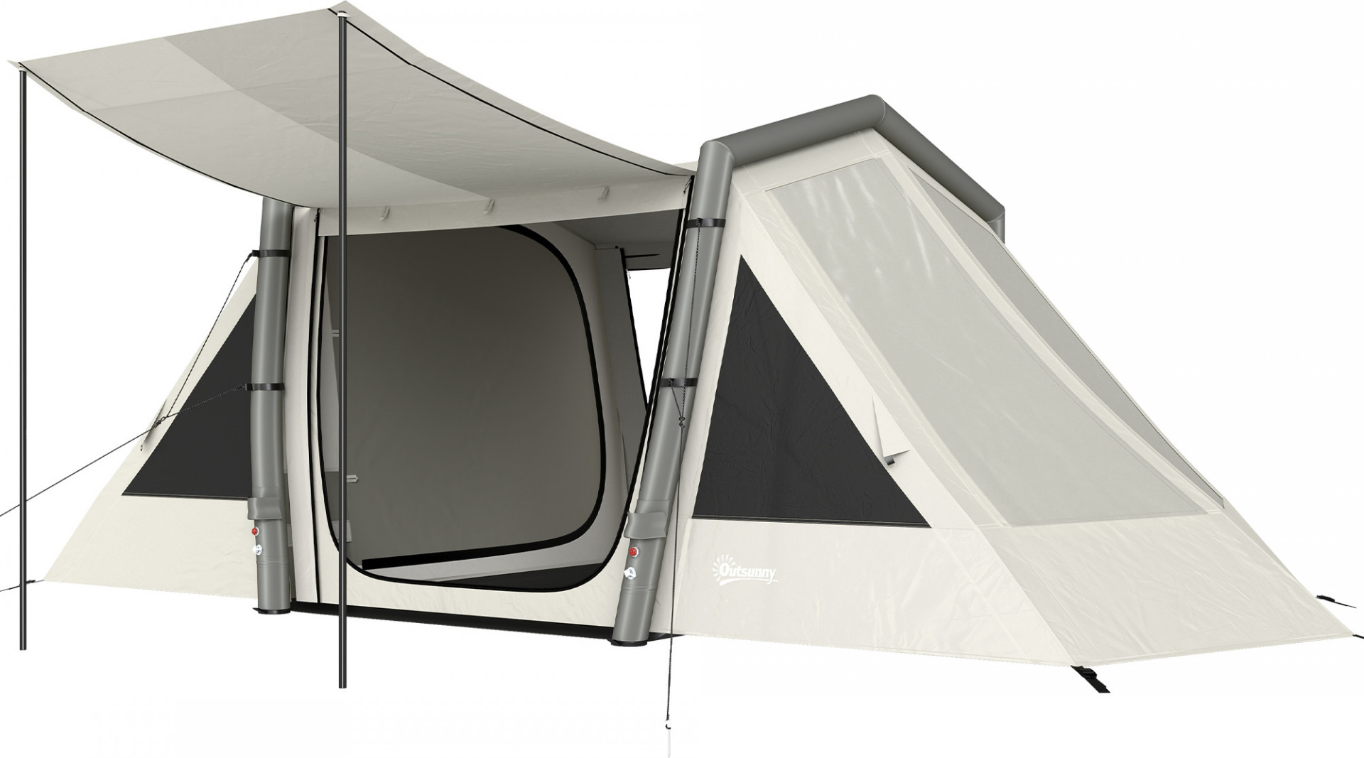 Už máte dost boje s tyčemi a hořícími budíky pod sluncem? Nenechte si zkazit dovolenou nedostatkem místa. Tento nafukovací stan postavíte za pouhých 5 minut a nabízí 3 prostorné plochy. Jeho zatemňovací technologie blokuje světlo a teplo pro delší a chladnější noci. Zažijte opět pohodové kempování bez omezení: Pohodlí, stín a klid pro celou rodinu. Čerstvý vzduch a ještě více relaxace!