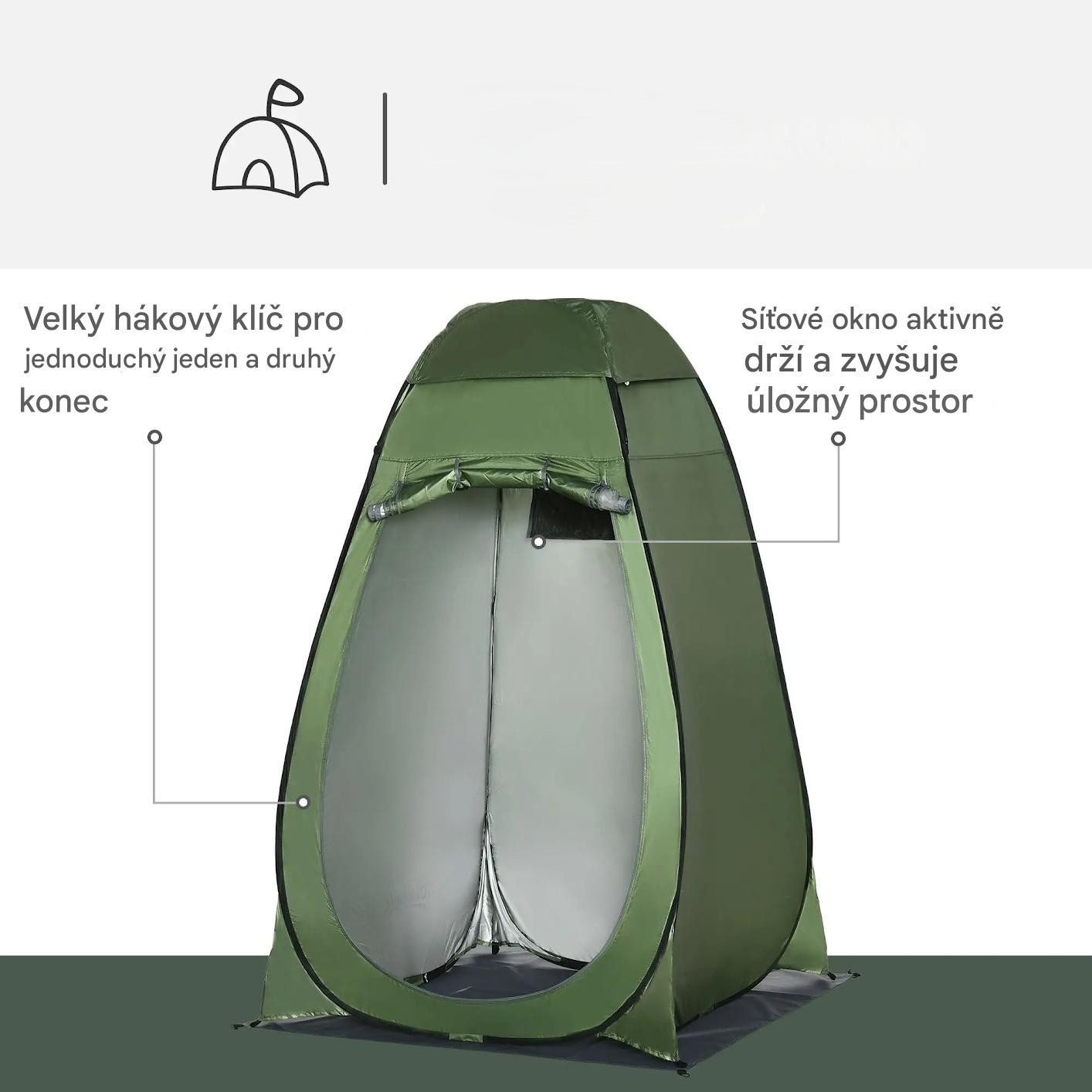 Hledání soukromí nebo sprchování při kempování může být obtížné, ale s tímto speciálním stanem jsou všechny tyto problémy vyřešeny. Vysouvací konstrukce pro snadné stavění a sundávání, lehké, ale pružné tyče tvoří rám a spojují látkové panely, které jsou voděodolné, aby uvnitř zůstalo sucho.